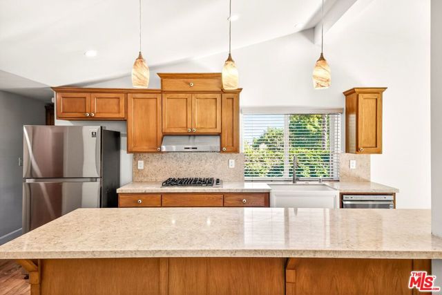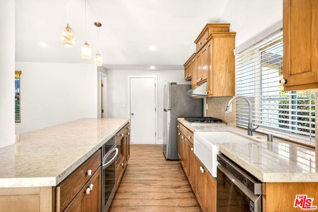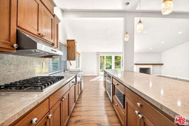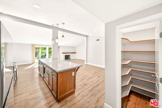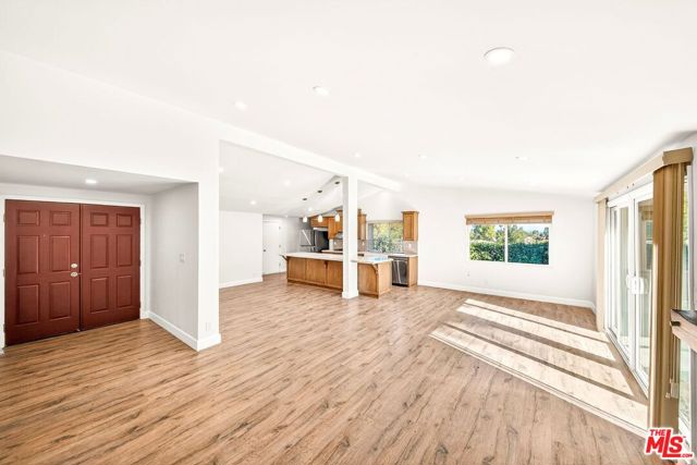 Welcome to this stunning 3-bedroom, 2-bathroom home set on an expansive 12,718 square-foot lot in prime East Woodland Hills. This fully renovated residence is not only bright and airy, with an open floor plan and vaulted smooth ceilings, but also designed to offer endless possibilities for a variety of buyers.Step inside to find neutral wood laminate flooring throughout and a gorgeous brand-new kitchen with quartz countertops, stainless steel appliances including a 4-burner gas Viking cooktop and a breakfast bar. The open-concept living and dining areas are warmed by a cozy fireplace, perfect for both entertaining and everyday living.The primary suite is a tranquil retreat with a large closet and an ensuite bathroom featuring a marble shower and quartz vanity. The secondary bedrooms include mirrored wardrobes and share a beautifully updated full bathroom.Outside, walls of glass lead to a spacious backyard with a concrete patio, grassy area, and beautiful views. This expansive lot is a key highlight, providing not only ample outdoor space but also tremendous upside potential.Perfectly situated in a quiet and safe neighborhood, this home is close to the 101 freeway, Ventura Blvd, The Village, Pierce College, and more.Whether you're an end user seeking a comfortable family home with a large yard, an investor looking for a lucrative rental opportunity, or a developer aiming to expand or build new construction, this property offers endless possibilities and significant value.