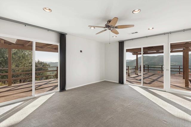 Perched above the valley with exceptional privacy, this custom-built single-story home is on the market for the first time. Located in a peaceful neighborhood of long-time residents with pride of ownership—and no HOA—the property offers sweeping, unobstructed views from nearly every room. Inside, expansive picture windows and sliding doors frame the dramatic vistas the moment you walk in. The spacious living room features a custom stone fireplace, a wet bar, and direct access to the massive covered wrap-around deck, recently sealed and ideal for entertaining, sunset dinners, or quiet mornings with coffee. The kitchen and family room include new luxury vinyl plank flooring along with a newer oven, GE Profile refrigerator, and induction cooktop. The family room also offers a built-in entertainment center and desk area with large windows showcasing the one-of-a-kind view. The primary suite includes its own slider to the deck, and the oversized primary bathroom features brand-new luxury plank flooring, an oversized walk-in shower, and dual sinks. Additional bathrooms have also been tastefully updated. Upgrades completed in 2025 include fresh interior and exterior paint, a new HVAC system installed in July 2025, a new water heater in August 2025, a new water softener, and dual-pane windows throughout (except the living-room picture windows). Exterior features include covered RV parking, a large fenced dog run, and a newly finished garage floor. This is a rare opportunity to own a lovingly maintained, view-filled home in a serene, established neighborhood.