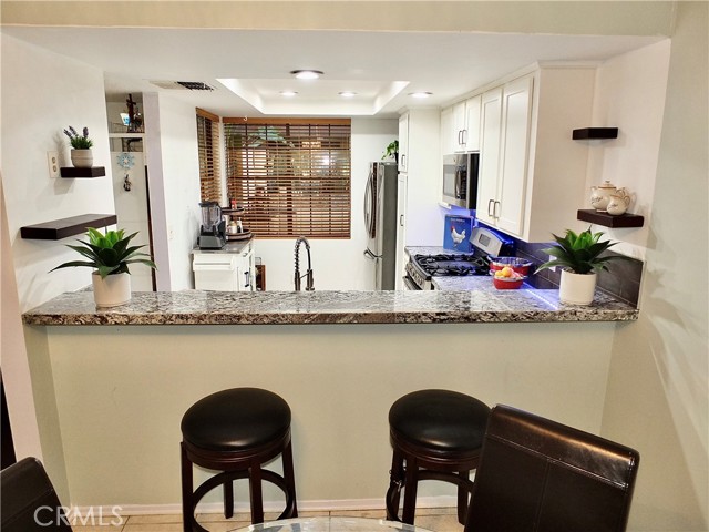 1655 Clark Ave, unit 124… an enchanting 2 bedroom 2 bathroom condominium, embracing ease and serenity in the wooded resort-like community of Clark Terrace… featuring cascading waterfalls, towering pines, lush landscaping opens to sparkling pool and spa in a tranquil glen, plus a tennis “club” boasting 2 beautifully maintained courts… tucked away only minutes from golf courses, the coast and beach cities with freeways connecting to all of Southern California! Approach on the lovely tree-lined garden pathway overlooking the waterfalls and pool… or via the convenient glass elevator from the secured 2 parking spaces below. Enjoy the treetop view through the entire unit as you step into the reception foyer. A stunning wet bar is central to the dining room and stepdown fireside living room, opening to a lovely lounge/ balcony amidst towering trees. The dining room and breakfast bar opens to the nicely appointed kitchen with granite countertops with stainless steel appliances. The laundry and storage are central to both bedrooms and bathrooms. The 2nd bathroom has dramatic lighting plus a walk in shower alcove. Bedroom #2 features great storage plus direct access to both the bedroom hallway and the foyer. Secluded… the primary suite includes a luxurious private bathroom with shower/ spa tub, a 3 mirrored door wardrobe closet, a large bedroom chamber plus glass door access to the balcony. Truly a stunning unit of casual luxury and natural warmth… all at Clark Terrace.
