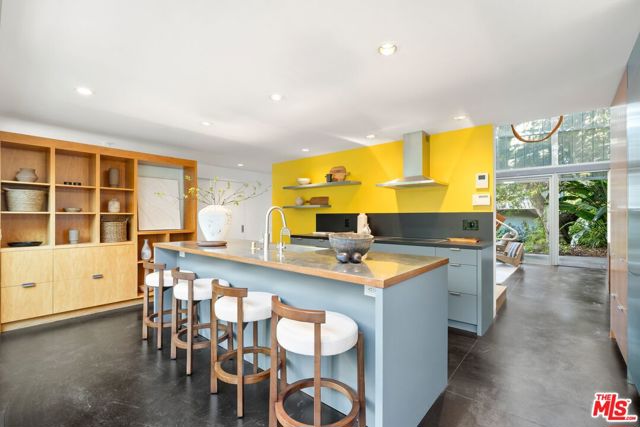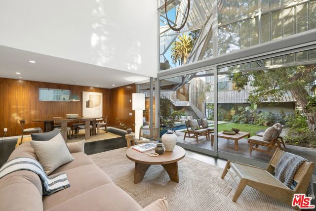 PALMS HOUSE I & II. Step inside this multiple award-winning architectural compound, a dramatic conception of complementary materials that combine to create modern serenity with multiple living structures bathed in sunlight, and a glassy pool ideally situated between. Extensively featured in the May '22 issue of Architectural Digest, no detail has been spared in this stunning showpiece. A triumph of creative design by renowned architect Kevin Daly, the property was visualized as a multi-generational estate for a contemporary lifestyle. Featuring three separate residences and offering thoughtfully conceived privacy from each one, there are endless possibilities for a seamless work/life balance amid the teeming natural surroundings and just a short walk to the famed shops, and restaurants on Abbot Kinney Boulevard. The main house (Palms II, completed in 2021) spotlights warm wood and screen elements set atop a concrete podium with a broad expanse of glass that provides open sight lines across the property. Complete with 3400 square feet of living space with 4 bedrooms and 3 1/2 baths, details include soaring ceilings, fireplace, polished concrete floors with radiant heating, primary bedroom with private deck and primary bath with steam shower. The second house (Palms I, completed in 2010) places emphasis on framing discrete vistas of trees and sky with apertures arranged from folding perforated metal screens wrapped around the base structure. Complete with 2000 square feet of living space featuring 3 bedrooms and 3 baths, details include soaring ceilings, open dining room, radiant floor heating, kitchen with outdoor dining patio, and a living plant wall designed by Big Red Sun. The ideally positioned guesthouse finishes the third chapter of the trilogy. Artfully executed as a 400 square foot studio, the space provides additional living/sleeping quarters with bath, dual sided fireplace, in-floor heating, and private deck and entrance.The outdoor courtyard is a gathering venue between the spaces, featuring 3 outdoor fireplaces, sport court with NBA regulation hoop, outdoor shower, garden and the pool with retractable cover. Parking for 8 cars (4 for each home and electric chargers in both) and state-of-the-art security systems with cameras complete the practical details of this truly striking and unprecedented property.