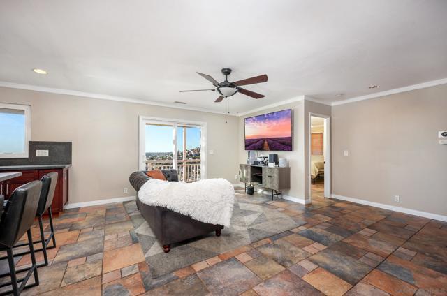 Experience elevated living with sweeping views of the Coronado Bridge from this beautifully updated two-story home, perfectly positioned at the end of a quiet Spring Valley cul-de-sac. Designed with entertainers in mind, the home welcomes you with bright, open spaces that transition seamlessly to multiple outdoor patios and view-filled balconies. Morning coffee, golden-hour gatherings, or weekend hosting — every moment feels connected to the scenery. Inside, the thoughtfully remodeled kitchen serves as the heart of the home, offering quality finishes and a layout that flows naturally into the dining and family areas. The result is an easy, comfortable environment that supports both everyday living and larger celebrations. Outdoor living truly shines here. Mature landscaping, private yard spaces, and several elevated balconies create a collection of inviting retreats — all oriented to capture expansive, panoramic sightlines. Additional features include generous garage and driveway parking, energy-efficient components that convey with the home, and a location that offers quick access to local shopping, dining, parks, hiking trails, and major commuter routes. A rare blend of privacy, views, and intentional upgrades — this home invites you to enjoy the best of Spring Valley living.