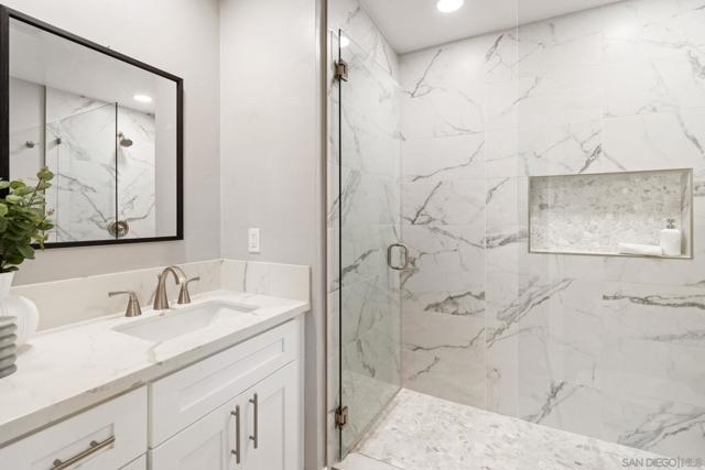Gorgeous 4 bed, 4 bath home in the desirable La Mesa/Mt. Helix area with approx. 2,500 sq. ft. of upgraded living space and fully owned solar. This open-concept home features a stunning chef’s kitchen with an oversized island, quartz counters, white shaker cabinets, and stainless steel appliances. Nearly everything has been updated over the last 6 years, including the roof, stucco, electrical panel, HVAC, windows, sliders, water heater, flooring, doors, and all 4 bathrooms. The flexible layout is ideal, offering two bedrooms on the main floor, one with an ensuite bathroom, an upstairs primary retreat, and an expansive lower-level second primary suite with a custom walk-in closet and spa-like bathroom. Exterior upgrades include a brand-new outdoor deck with pergola, new landscaping and concrete driveway for additional parking. This move-in-ready home blends modern finishes, thoughtful design, and exceptional value in a highly sought-after neighborhood. You do not want to miss it! Gorgeous 4 bed, 4 bath home in the desirable La Mesa/Mt. Helix area with approx. 2,500 sq. ft. of upgraded living space and fully owned solar. This open-concept home features a stunning chef’s kitchen with an oversized island, quartz counters, white shaker cabinets, and stainless steel appliances. Nearly everything has been updated over the last 6 years, including the roof, stucco, electrical panel, HVAC, windows, sliders, water heater, flooring, doors, and all 4 bathrooms. The flexible layout is ideal, offering two bedrooms on the main floor, one with an ensuite bathroom, an upstairs primary retreat, and an expansive lower-level second primary suite with a custom walk-in closet and spa-like bathroom. Exterior upgrades include a brand-new outdoor deck with pergola, new landscaping and concrete driveway for additional parking. This move-in-ready home blends modern finishes, thoughtful design, and exceptional value in a highly sought-after neighborhood. You do not want to miss it!
