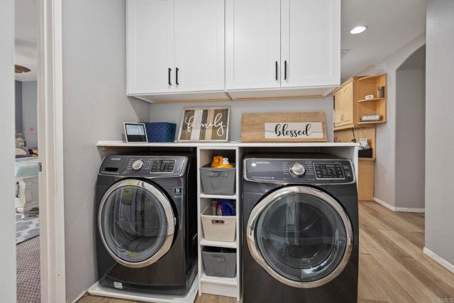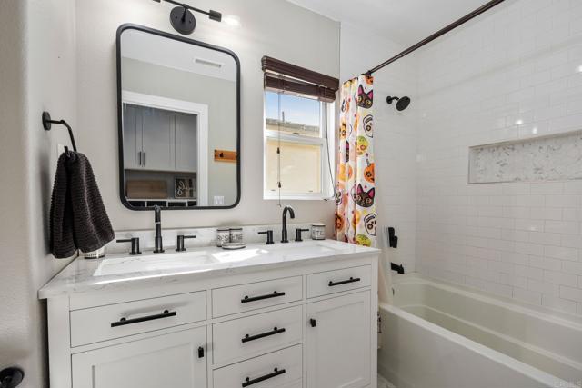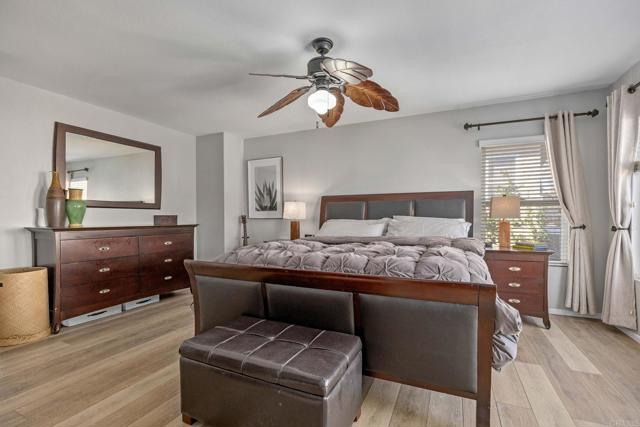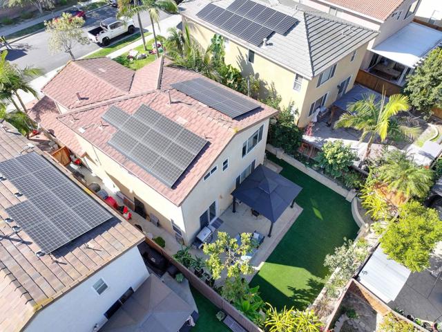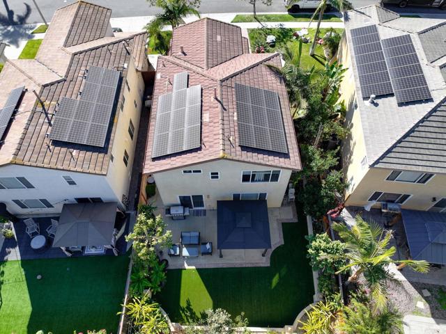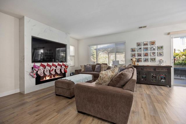 Welcome to one of the most desirable neighborhoods in Otay Ranch, McMillin Lomas Verdes. This tastefully updated home is move-in ready! Stepping inside the home, you're greeted by family functional open concept room great for entertaining. The kitchen features a quartz waterfall peninsula, with beautiful pendant lights. Plenty of cabinet space with soft close doors. Stainless steel appliances and subway tile backsplash complete the look with an added bonus of a coffee & wine bar area with extra storage space. The family room has a cozy feel with a custom media center and an electric fireplace. The dining area leads directly to your low maintenance backyard, with ample room for bbq's and outdoor fun. There is a conveniently located half bathroom on the main level. Upstairs, you'll find the primary retreat with a generous walk in closet and primary bath with a dual sinks. Along with the 2 additional bedrooms is the 2nd full bath and adjacent laundry area. For added bonus, the upstairs loft is perfect for a home office or study area. Luxury vinyl plank floors featured throughout the home and solar panels for generating clean, renewable electricity. Convenient access to 125/805 freeways, nearby schools, Otay Ranch Town Center, shops and restaurants.