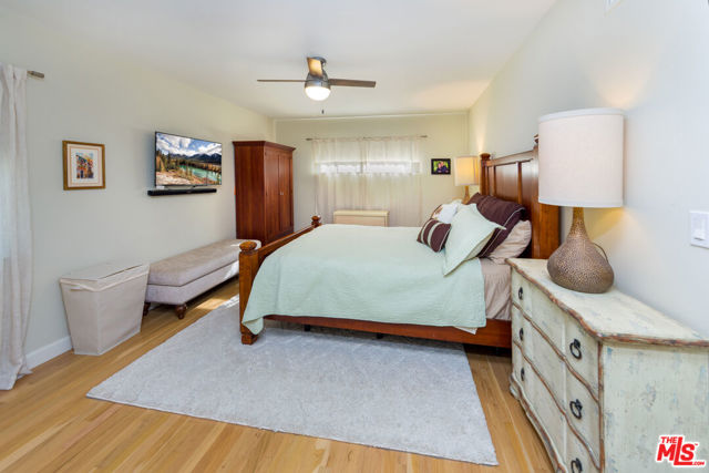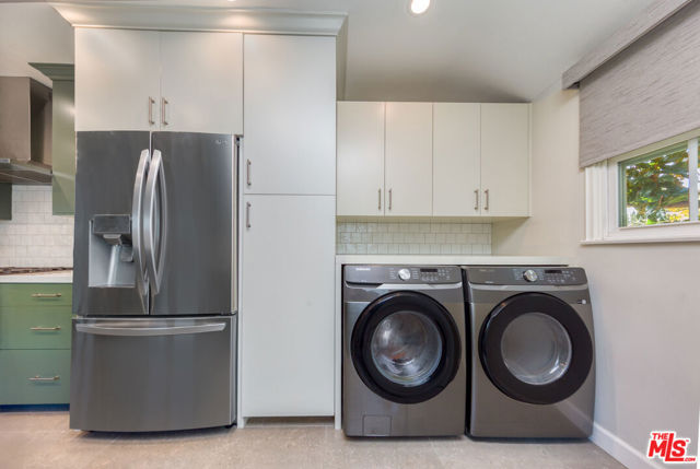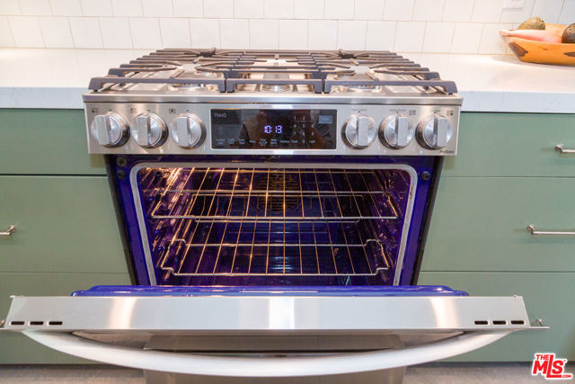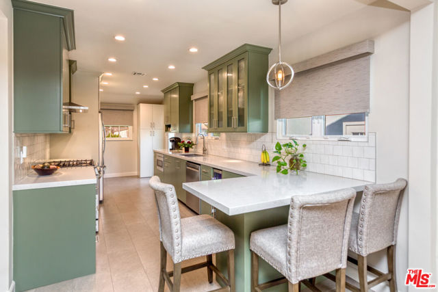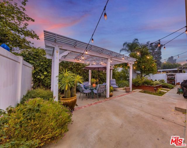 Charming curb appeal welcomes you home with a classic white picket fence, drought-tolerant landscaping, and colorful flowering plants in the heart of the vibrant Valley Village/Valley Glen community. A formal entry opens to an expansive living and dining room combination, anchored by a cozy fireplace perfect for both everyday living and entertaining. The newer kitchen features updated (2022) forest green cabinetry, all-new hi-end stainless steel appliances (incl. LG Probake 5-burner stove and Kalamera wine fridge), and an open layout with an attached laundry room for added convenience. The home offers 3 bedrooms and 2 baths, including a serene primary suite with a beautifully remodeled bathroom completed in 2022, designed as a true hotel-like oasis w/gray-green subway tiles in shower/tub. The converted garage has been thoughtfully transformed into a studio with built-in cabinetry, ideal for a home office, playroom, or creative space, and can easily be converted back to a functional garage if desired. Drop-down ladder in hallway provides access to attic for storage. The beautifully laid-out backyard is perfect for relaxing or hosting, featuring a pergola, patio, a beloved orange tree, and water-wise landscaping with succulent plantings, flower beds and vegetable gardens. Located near Studio City and both canyons, Valley Glen/Valley Village is a vibrant hip community known for many Houses of Worship, kosher shopping and religious institutions, as well as great eateries, cafe's and ease of reaching downtown or the Westside, offering the perfect blend of neighborhood charm and urban convenience.