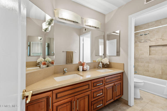 Lovely estate home located in the highly sought-after Rosewood community of Newbury Park. Quietly nestled against the gently rolling hills of the Rancho El Conejo range, Rosewood is an exclusive enclave of single-family homes rich in scenic beauty and surrounded by lush hillside terrain and open space.Enter through handcrafted double doors into a grand foyer, where an expansive staircase makes an elegant first impression. The light-filled formal living room features a fireplace and flows seamlessly into the adjoining formal dining room--ideal for entertaining. The gourmet island kitchen includes a breakfast area and opens to the inviting family room with surround sound and cozy fireplace, creating a warm and welcoming gathering space.Upstairs, the spacious primary suite boasts double-door entry, a fireplace, and a well-appointed en-suite bath with a high-end mirror with an electric defroster, oversized soaking tub, dual vanities, separate shower, and walk-in closet. Three additional bedrooms and a highly desirable bonus room--perfect for a home office, playroom, or media space--complete the upper level.Additional features include dual-glazed windows and central heating and air conditioning with newer dual forced-air condenser units serving separate living and sleeping zones, two-year old water heater, new, one-year-old concrete tile roof. The charming backyard offers a covered patio and provides a welcoming setting for family and friends to relax and gather.Located within the award-winning Conejo Valley Unified School District and close to equestrian and hiking trails, neighborhood parks, major shopping, cultural events at the Civic Arts Plaza, and convenient freeway access. Conejo Valley living at its finest is exemplified in the lovely Rosewood community.