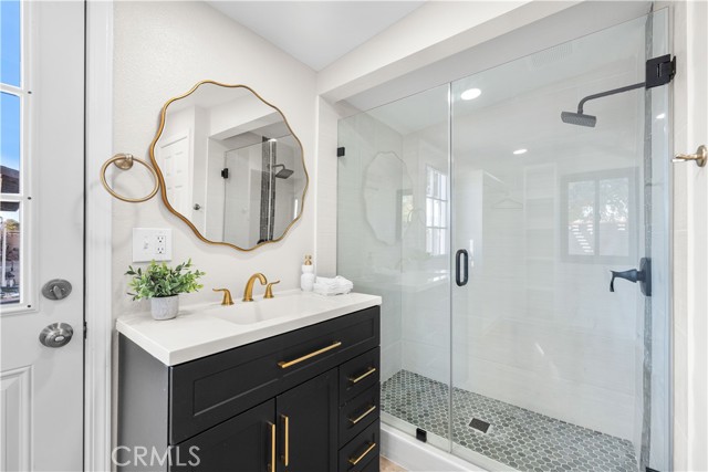 Discover a meticulously renovated ranch home that seamlessly blends modern luxury with classic charm in the prestigious White Fence Farm area. This stunning 1,144-square-foot residence features two bedrooms and two bathrooms, showcasing thoughtful upgrades throughout with ADU possibilities. The heart of the home is a designer kitchen, complete with new cabinetry, modern appliances, and striking quartz countertops featuring a unique cascading design. The living room makes a bold statement with its floor-to-ceiling tiled fireplace, creating an inviting atmosphere for both relaxation and entertaining. The primary bedroom offers generous proportions and connects to an elegantly appointed bathroom, featuring a frameless shower with designer tile work and an open-concept closet space. The hall bathroom has been beautifully updated with new tiling, a contemporary vanity, and a modern mirror. Step outside to discover a versatile detached garage that's been transformed into a flexible space, featuring both an office and a pool room. The backyard has been completely reimagined with fresh sod, new cement work, and a covered patio perfect for outdoor entertaining. The expansive, fully fenced lot provides ample space for outdoor activities and future expansion. Located in a highly desirable neighborhood, this property offers quick access to major transportation routes while maintaining its peaceful ranch atmosphere. Every detail of this home has been carefully considered and upgraded, creating a perfect blend of comfort and sophistication for the discerning buyer.
