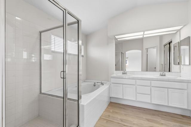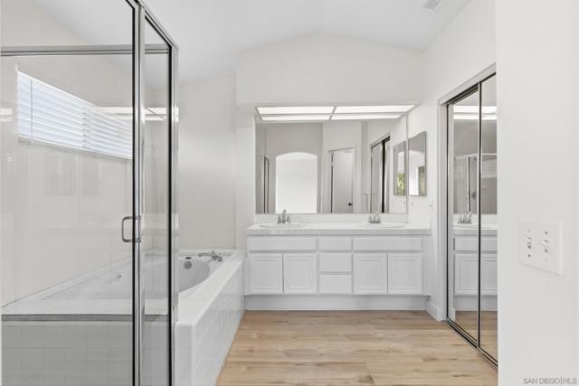 Welcome to the largest floorplan in the highly sought-after gated community of Chapala—rarely available and move-in ready. This spacious 4-bedroom townhome has been freshly painted and features new flooring throughout, offering a clean, modern feel. The versatile main level includes a bedroom ideal for guests or a home office, along with a full bath. Enjoy a bright, open-concept living space that flows to a private backyard—perfect for entertaining, relaxing, or gardening. Upstairs, the expansive primary suite features vaulted ceilings, a large walk-in closet, and a well-appointed bath with separate soaking tub and shower. Two additional bedrooms share a Jack-and-Jill bathroom, providing both privacy and convenience. Additional highlights include central A/C, dedicated laundry, and a secure two-car garage with nearby guest parking. Chapala residents enjoy resort-style amenities including a pool, spa, tennis courts, and beautifully maintained grounds, all within a gated community close to shopping, parks, and schools. A rare opportunity to own the most spacious and versatile floorplan in Chapala.