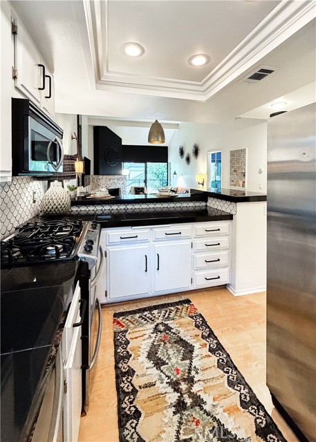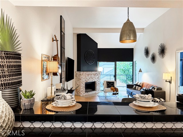 Upstairs with soaring cathedral ceilings. Remodeled kitchen. A turn key move-in. Open concept kitchen with eating bar. Floor to ceiling fireplace. Master with cathedral ceiling and walk-in closet. Inside washer/dryer, skylights, too. All this plus, view from balcony. View includes park like greenbelts, streams, walking paths. Gated community with pool, spa, tennis courts. 1 car garage. Beautiful!!!