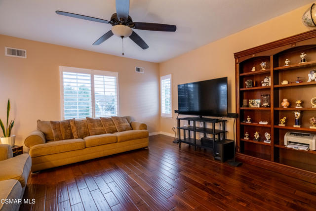 Upgraded two story Heritage home in Dos Vientos with views! Popular Open Floor Plan with Custom Gourmet Kitchen, Granite Countertops, Travertine Backsplash, Stainless Steel Appliances, Opens to Spacious Family Room with Fireplace. Formal Living & Dining Room. Gorgeous Acacia Wood Floors and Plantation Shutters throughout. Master Suite with Large Custom Walk-in Closet, Newly Remodeled Bathroom with Anthracite Tile Floors, Crushed Quartz Countertops, Dual Vanities, Rialto Grand Polished Tiles in Shower, Black Hexagon Slate Mosaic Shower Floor Tiles, and Towel Warmer. 3 Additional bedrooms upstairs and bonus loft/office. Completely upgraded second bathroom upstairs. Nest smart doorbell, smart displays, security cameras, thermostat, and smoke/carbon alarm. Tesla wall charger, Rachio Automated Sprinkler Controller, and App Controlled Garage Door Opener. Finished Garage Flooring and Built-Ins. Spectacular Yard w/ Some of the Best Views in Dos Vientos and Lush Landscaping. Patio perfect for Dining Alfresco and Fire Pit. Three Car Garage, Prime Location. Access to Private Community Pool and Spa, Private Park with Playground. Close to Sycamore Canyon K-8 School, Public Parks, The Village Shopping Center. An Amazing Offer!