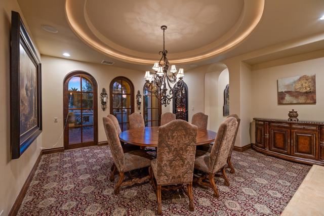 ***CALL AGENT - (760) 578-5051*** - Furnished w/ Owned SOLAR* Welcome to a stunning Tuscan-inspired estate, an architectural masterpiece that embodies the perfect balance of old-world European charm & modern luxury. Nestled on over an acre of pristine grounds in the heart of Rancho Mirage, this breathtaking Mediterranean compound is located in an exclusive gated enclave at the end of a quiet cul-de-sac. Designed to captivate and inspire, this resort-like retreat offers unparalleled privacy, elegance, and sophistication. From the moment you enter, soaring ceilings, exquisite travertine flooring, & walls of glass invite in abundant natural light, framing picturesque views of the lush gardens & mountains. The expansive great room features a grand fireplace and seamlessly flows into the formal dining area & full wet bar, creating the ultimate space for entertaining. The gourmet kitchen is a chef's dream, adorned with custom wood cabinetry, premium granite countertops, & a massive center island. State-of-the-art appliances, a built-in refrigerator, & a walk-in pantry complement an intimate breakfast nook overlooking the serene outdoor setting. A climate-controlled wine cellar provides an elegant space for your most prized collection, while the estate's open floor plan ensures an effortless indoor-outdoor lifestyle. This estate boasts five oversized bedrooms, each with spa-like en-suite bathrooms, offering the perfect blend of comfort and refinement. The primary suite is a sanctuary, featuring a private fireplace, spa-inspired bathroom with a deep soaking tub, dual vanities, and a large walk-in shower. A private casita provides an ideal guest retreat, ensuring comfort and privacy for family & visitors. Step outside to a private paradise, where the resort-sized infinity-edge pool, cascading spa, and custom rock waterfalls create a setting of pure tranquility. Surrounded by towering palms, lush gardens, and vibrant desert flora, this outdoor oasis is designed for grand-scale entertaining or peaceful relaxation. A fully equipped outdoor kitchen & bar, multiple lounge areas, & a covered patio invite you to indulge in the ultimate alfresco lifestyle. This exceptional estate also includes a 50-ft motorhome garage, four-car garage, & dedicated workshop area, making it a rare find for car enthusiasts & collectors.