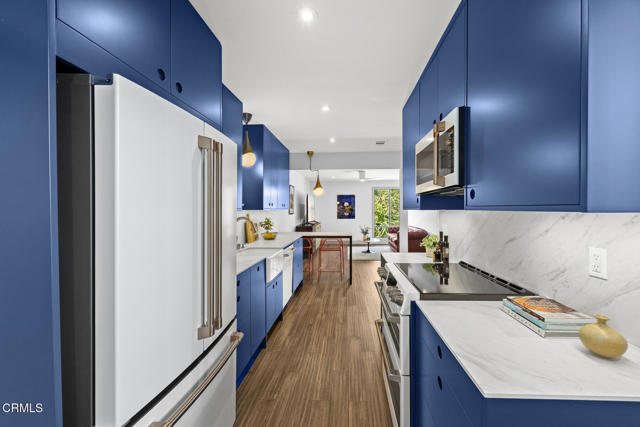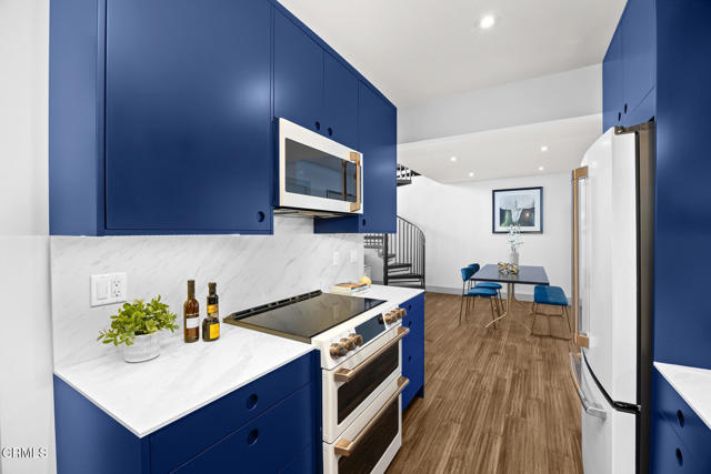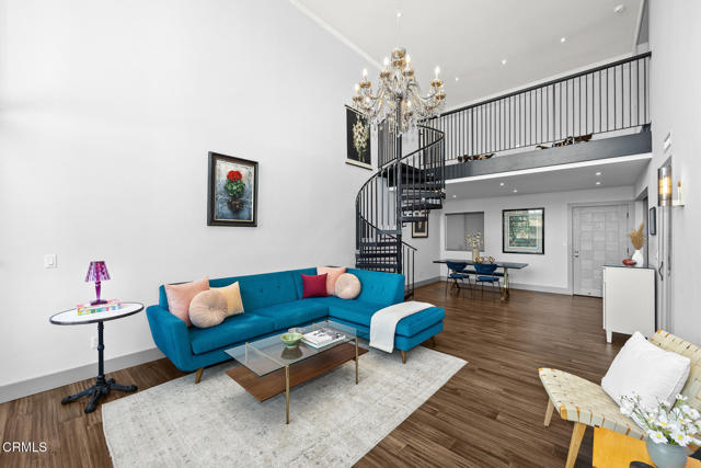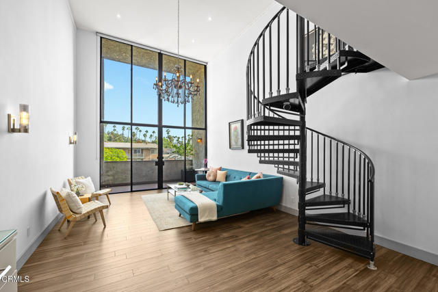 Beautifully Remodeled Top-Floor Corner Condo in Prime Glendale Location. Experience sophisticated urban living in this extensively remodeled top-floor corner unit, ideally situated in one of Glendale's most sought-after neighborhoods. Step into a bright, open floor plan featuring soaring 17ft two-story ceilings and expansive floor-to-ceiling windows and doors that flood the living area with natural light and open to a private balcony with stunning cityscape views. The cozy dining area flows seamlessly into a beautifully remodeled kitchen, complete with newer top of-the-line Cafe appliances, sleek finishes, and a convenient peninsula that opens to a versatile converted family room--perfect as a third bedroom, home office, or media space. A convenient hallway leads to the laundry closet, pantry, and bedrooms. The spacious primary suite offers a serene retreat with an attached remodeled bathroom and a private balcony overlooking peaceful hillside views. A whimsical spiral staircase leads to an idyllic loft area and a large bonus room--ideal for use as a home office, gym, library, or creative studio, offering endless possibilities to suit your lifestyle. Additional highlights include: Two side-by-side parking spaces in a secure subterranean gated garage, Private storage unit, Prime location near shops, restaurants, and local attractions. This exceptional condo effortlessly combines modern elegance, comfort, and convenience--all in the heart of Glendale.