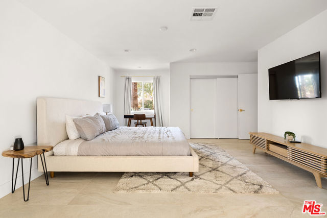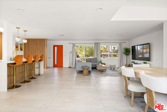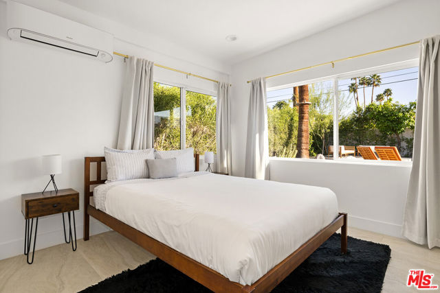Fully renovated Mid-Century Modern home in South Palm Desert offering stunning mountain views and exceptional curb appeal. Situated on a 10,890 sq ft lot, this property features 4BD/3.5BA in the main residence plus a fully permitted approx. 462 sq ft ADU with full kitchen and bath ideal for guests or rental income. Bright open floor plan with a designer kitchen showcasing SMEG appliances, quartz countertops, custom cabinetry, oversized skylight, and waterfall-edge island. Matte porcelain tile flooring throughout. Spacious primary suite with private patio, vintage fireplace, and spa-style bath with soaking tub, dual vanities, and skylight. Resort-style backyard includes tiled pool and spa, floating sundeck, outdoor dining and bar areas, firepit, putting green, and desert landscaping. Additional features include leased solar, new HVAC with mini-splits, NEST thermostat, new windows, upgraded electrical and plumbing, large driveway with carport, and Tesla EV charger. No HOA. Close to El Paseo shopping, dining, and premier golf courses. Listing agent is owner.