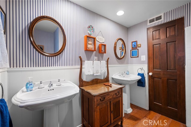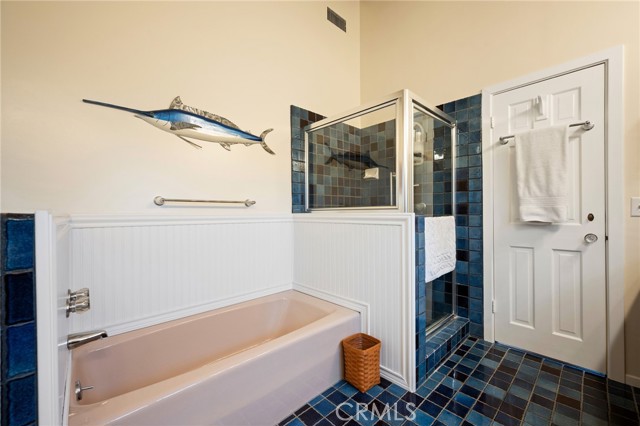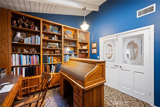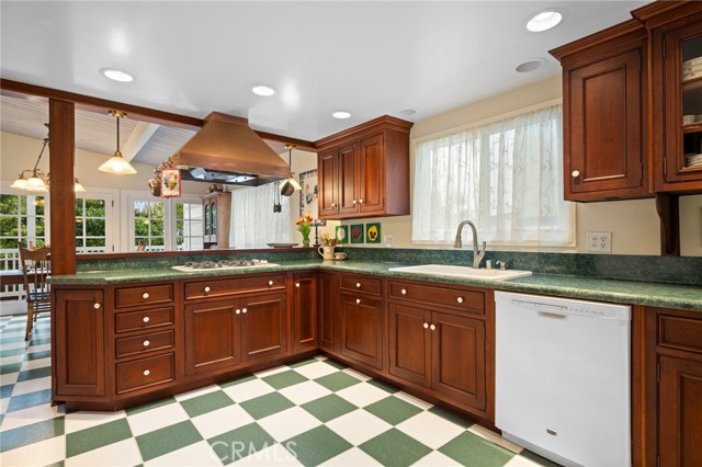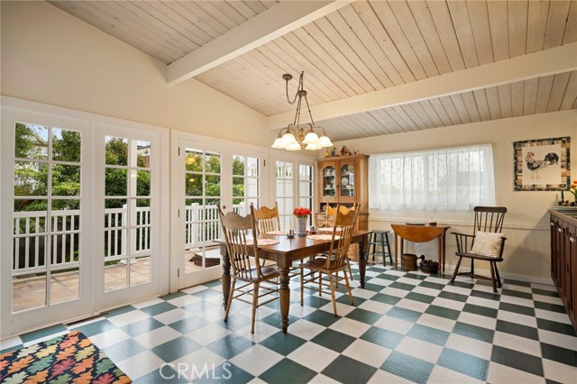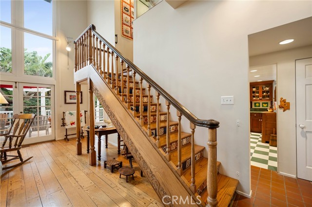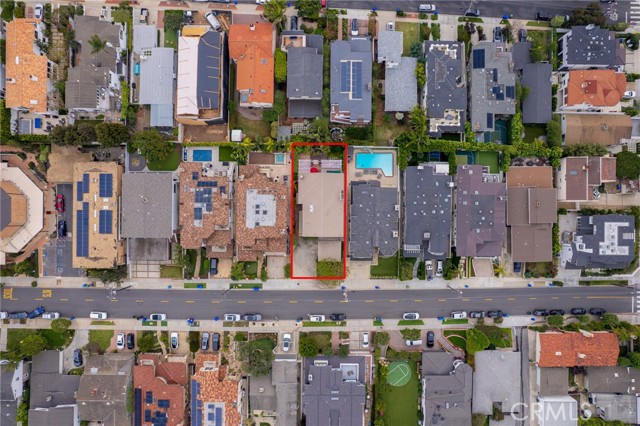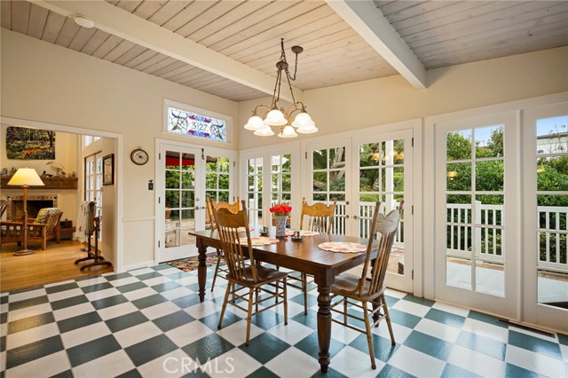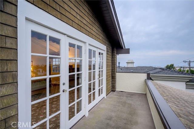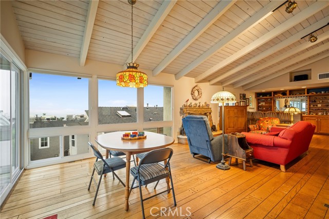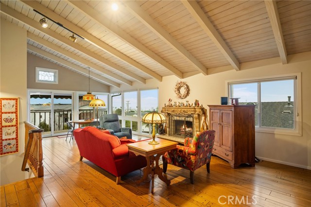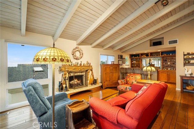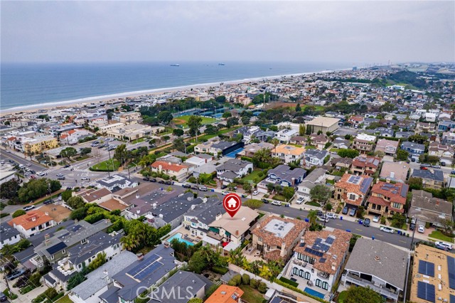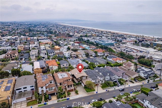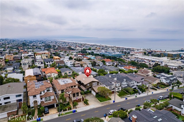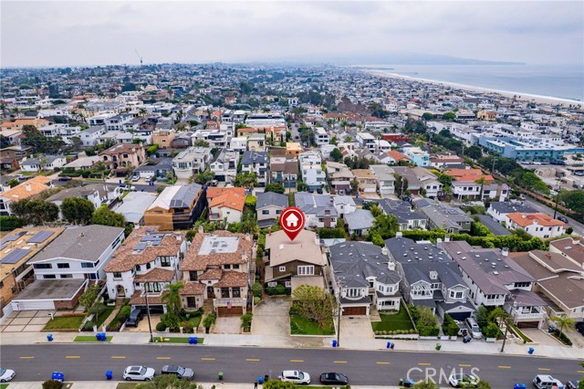 This one’s a stunner! Timeless, New England inspired, seaside cottage on the outside. Hand-crafted details, old-word charm, and sense of artisan craftsmanship on the inside. This Manhattan Beach home is a rare and refreshing blend of warmth and character, with both function and practicality. The Manhattan Beach Greenbelt sits just a few houses down, and Manhattan Beach Blvd., The Pier, The Strand, and the sand are all just a short walk away. 3,031 sqft on the inside sitting on a 6,249 sqft lot, with 7 bedrooms and 3.5 baths. Classic red front door entry opens to dramatic, light-filled living room, with high vaulted ceiling with exposed beams. Living room, gas fireplace, features ceramic tile, and artisan carved-wood detailing. Living room transitions to dinning and kitchen area, framed by French doors that create a sunlit connection to the backyard. Comfortably spacious dining area features Breakfast Counter to kitchen perfect for serving or extra space. Kitchen features custom, rich-wood, cabinetry with two pantries and storage nook. Beautiful and bright half-bath sits just off kitchen and at front of guest bedroom hallway. First guest bedroom is a suite, larger than others, with full bath featuring walk-in shower. Hallway leads to three additional guest bedrooms plus full guest bath with tub, and laundry area. Fifth bedroom sits at the end of the hall and is used as a utility room which leads to garage. Artisan crafted staircase leads up to second floor and opens to spacious family room with ocean views. Family room features wood-burning, fireplace with ceramic tile and artisan detailing. Family room also includes wet bar with large counter, and dinning area that leads to balcony. From the family room, your ocean view takes you from Palos Verdes and Catalina, all the way to the Manhattan Beach Pier. Den sits just off family room and features built in cabinets and desk. Spacious and sunlit, the primary bedroom sits just beyond the den and features a large walk-in closet and private outdoor balcony. The primary bath is generous in size with a separate tub and walk-in shower, beautifully detailed with ocean-blue tile-work. The backyard is like a private retreat, appointed with Spanish tile, pergola, plants, flowers, and in-ground spa. The attention to detail in this home is singular. Every corner of this home shows thoughtful craftsmanship and timeless detail that is both wonderfully charming and unique.