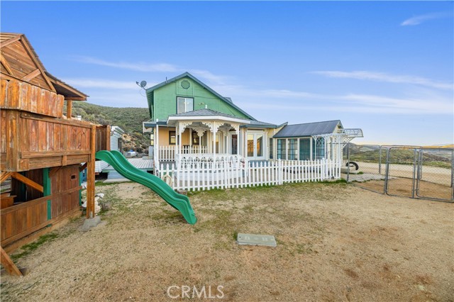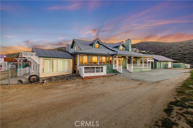 Stunning views from this one of a kind Victorian farmhouse located on over 2 acres in Leona Valley. Out front you will find a covered porch perfect for enjoying the mountain view and a double stain glass entry. The living room offers plenty of space for entertaining and a cozy fireplace. The kitchen features beautiful custom oak cabinetry with NO wasted space, pantry and connection to the formal dining room. This custom home features 3 bedrooms, 2.5 bathrooms, an office/bonus room, an enclosed sunroom and so much more! Each bedroom features a large closet, personal sink, and gorgeous views. Downstairs you will find a spacious laundry room with tons of storage, room for an extra refrigerator, and a laundry chute. Each bathroom has a commercial grade toilet that hangs off the wall for easy cleaning. The entire upstairs was designed to become a guest house with its own entry. Outside you will find tons of parking, RV access with hookups and a dump station, a carport, a 864 sqft garage/workshop and Five 220 volt outlets set up for car charging. You will also find an adorable gazebo, a large child's playset, a chicken coop, an insulated greenhouse and a mobile home. This home is a MUST see!