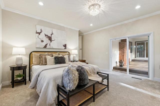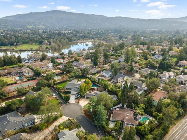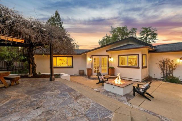 Elegant Spanish style single story home in a quiet cul-de-sac location! Inviting front porch entry opens to a spacious interior. Vaulted ceilings, dark stained hardwood floors and generous living spaces overlook the rear garden. Enjoy the spacious living room with handsome fireplace. Adjacent French doors open to the executive office or dining room. The kitchen will please any home chef with professional grade appliances and lovely painted cabinetry with gorgeous granite counters, a generous eating area with access to the rear yard. A family room sits just beyond with vaulted ceiling with patio access. All four bedrooms sit along the hallway and the private primary suite is a true retreat with views of the rear garden. Luxurious baths with top of the line finishes. The oversized lot has beautiful landscaping and the rear yard enjoys resort style amenities including a large patio entertaining area with a plumbed firepit to enjoy on a cool evening. Large outdoor kitchen with spacious bar height seating for dining al fresco. The beautiful pool sits above separated with an attractive iron fence with the hills beyond. A fenced lawn area and additional patio area is located outside the primary suite. Top Los Gatos schools and convenient location with close proximity to HWYs 85 & 880.