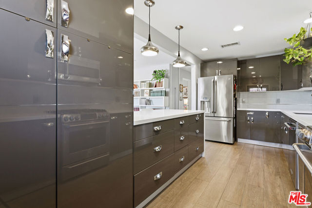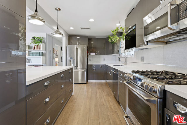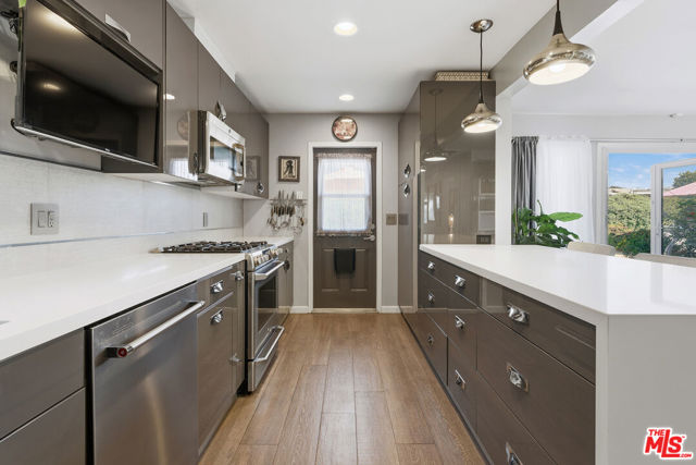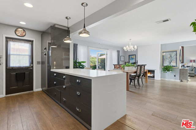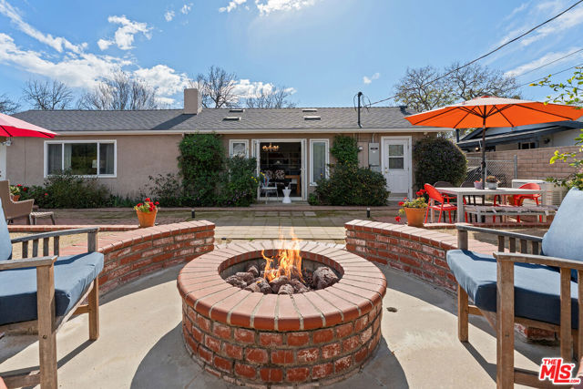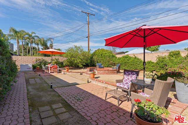 This privately gated, renovated single-story home offers comfort, functionality, and privacy on a generous 7,630 sq ft flat lot in a quiet Canoga Park neighborhood. With 3 bedrooms, 2.5 bathrooms, and 1,671 sq ft of living space, the open layout is spacious and versatile, ideal for everyday living as well as entertaining. Engineered oak flooring runs throughout the main living areas, creating a cohesive and timeless feel, while the entry features slate flooring and the kitchen, bathrooms, and laundry room are finished with tile. All lighting fixtures throughout the home have been thoughtfully updated. The living room features cathedral ceilings, abundant natural light, and generous seating space, along with a convenient powder room and pantry/laundry room. The dining area includes a wood-burning fireplace and French doors that open to the backyard - perfect for indoor-outdoor flow. The dining space also connects seamlessly to the remodeled gourmet kitchen, complete with quartz countertops, stainless steel appliances, a breakfast bar, and ample cabinet storage. Three lovely bedrooms down the hallway offer flexible living options and share two beautifully appointed bathrooms. The primary bedroom includes a ceiling fan for added comfort. Storage systems are installed in two bedroom closets as well as the entry closet. The expansive, flat backyard is already enhanced with mature landscaping and a fire pit, offering a welcoming outdoor retreat with room to further customize for entertaining, outdoor living, gardening, or play. The property features attractive curb appeal highlighted by a large, flat grassy front yard. Additional highlights include a two-car carport with extra driveway parking, copper plumbing, a brand-new roof installed in 2025, a natural gas full-house generator, brand-new water heater and garbage disposal, new driveway and side-yard gates, added attic insulation, a secure package mailbox, and thoughtful storage upgrades throughout. A well-maintained home offering meaningful improvements, flexible living spaces, and an easy, desirable single-story layout designed for comfortable everyday living.