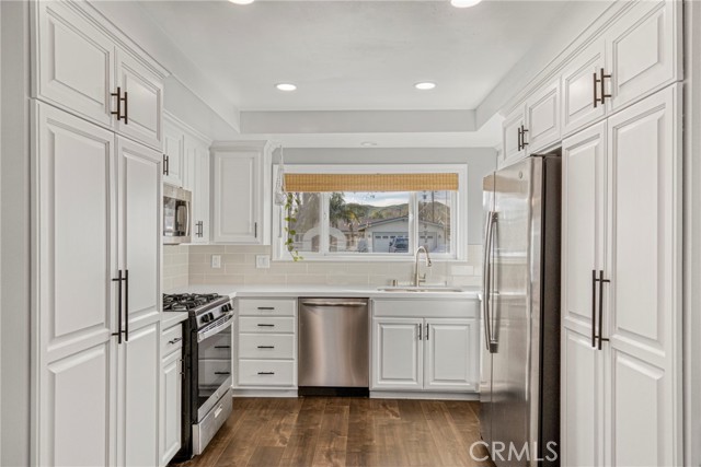 This adorable single-story Simi Valley home could just be the one with its fantastic curb appeal and charming neighborhood. This welcoming, move-in-ready home has that “this feels right” vibe the moment you pull up with a newer double front door and cute porch. Step inside to a cozy living room with a fireplace that instantly makes the space feel like home. The living area opens seamlessly into the dining space, highlighted by updated flooring throughout the whole house. The updated kitchen has just been refreshed with resurfaced cabinets, really showing off the quartz countertops and stainless steel appliances. The secondary rooms are a good size with a beautifully updated bathroom to share. The large primary bedroom really has that relaxing feel with a custom accent wall, walk-in closet with a custom barn door, and an updated en-suite with walk-in shower. Down the hall, you will find your laundry area with additional storage just before going out to your nicely finished, direct-access 2-car garage. The low-maintenance backyard is designed for pure enjoyment, featuring a newer concrete patio and solid patio cover and side yard, newly added landscaping, and wait did we mention there is potential to add RV access? Other significant improvements have been made behind the scenes, including a newer roof, upgraded attic ducting and insulation, replaced windows, and a new HVAC and furnace providing peace of mind for years to come. Nestled in a quiet neighborhood, the home enjoys a prime location near local hiking trails, parks, great schools, shopping, and dining, while remaining just minutes from the 23 and 118 freeways.