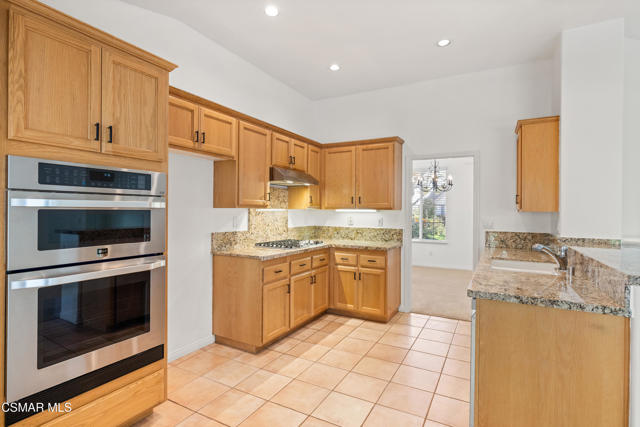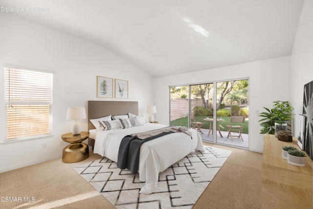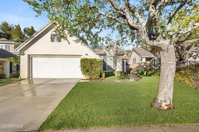 Welcome home to this immaculate 3 bedroom, 2 bath, single level home located in the very desirable Lang Ranch/Meadow Wood neighborhood of Thousand Oaks. Tall ceilings and recessed lighting throughout. NEW paint inside and NEW sod outside. NEWER air conditioning condenser and carpeting. The upgraded kitchen with plenty of storage has granite counters and NEWER stainless appliances: 6-burner gas cooktop, oven, microwave, dishwasher, trash compactor, and range hood. The kitchen, adjoining breakfast area and living room have a great flow for that open concept feeling. The living room has a 2-sided fireplace that it shares with the dining room. A generous sized primary bedroom features a large walk in closet. A slider in the primary bedroom beckons you to the trellised patio and private backyard. What a great space to begin the day with a cup of coffee or relax after a long day with a glass of wine. In the primary bathroom there's a jetted soaking tub, a separate glass enclosed shower with tiled counters and dual sinks. There's also an additional full bath and 2 more bedrooms . The indoor laundry room has plenty of storage. Enjoy lots of privacy since the home backs to a low maintenance hillside that does not require yearly brush abatement. No HOA! The very desirable and award winning Lang Ranch Elementary is just down the street. Close to shopping, dining and hiking. Move in and live!