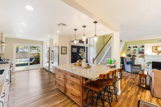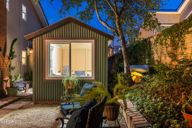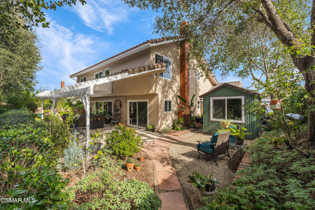 Welcome to this exceptional 4 bed, 3 bath home offering a thoughtful 2,080 sq ft layout embraced by nature on all sides. Set among majestic California oak trees and natural landscaping, this property feels like a private retreat with shade, filtered sunlight, and beauty from every angle. The expansive yard features multiple outdoor gathering spaces, including a secret meditation platform, perfect for quiet getaways and serene moments. Inside, the heart of the home is the updated kitchen, beautifully appointed with a separate refrigerator and freezer, granite countertops, unique pillowed tile backsplash, and a large island ideal for prep and serving. Exceptional lighting illuminates the space, which flows seamlessly to a front courtyard patio perfect for morning coffee, outdoor dining, and conversation. The living and dining rooms offer open vistas to the tree canopy and are flooded with natural light. Custom Craftsman-style bookcases enhance the warm and inviting feel, creating a space perfect for relaxing and entertaining. Escape to the family room, complete with a brick fireplace and adjacent powder room ideal as a cozy retreat or versatile bonus space. With so many optional uses, this room could easily become a playroom, man cave, or large home office just steps from the kitchen. Upstairs you'll find four sunlit bedrooms, including a spacious primary suite with soaring ceilings, a walk-in closet, and a newly updated step-in shower a private haven to relax and unwind. The outdoors are nothing short of spectacular and peaceful. A converted garden shed now serves as a charming and functional outdoor office, playroom, or ''she-shed,'' adding even more versatility to this unique property. Additional features include a three-car garage, gleaming wood-like flooring, dual-pane windows and sliders, newer heating and air conditioning, a whole-house fan, fresh exterior paint, and fire-hardening soffits added to the roofline to help protect your investment. With no house behind, you'll feel worlds away, yet enjoy close proximity to shopping, schools, and parks. This tranquil and thoughtfully upgraded home is truly a hidden gem and a must-see!