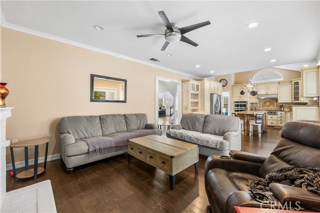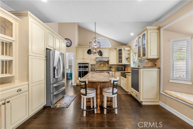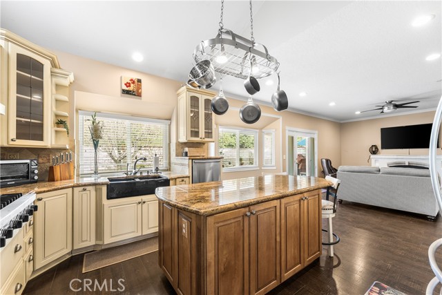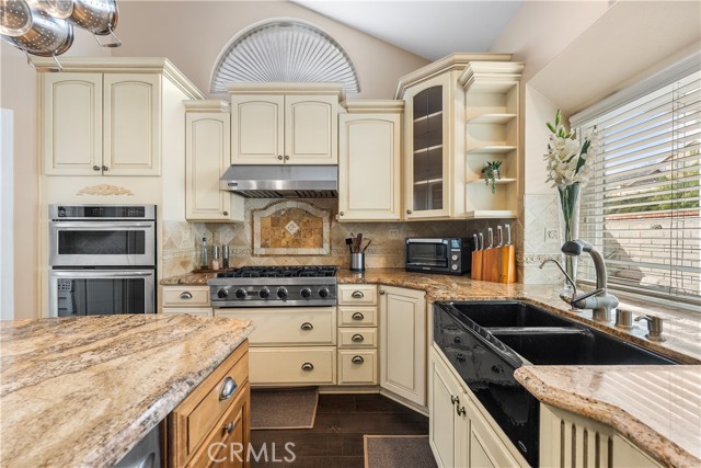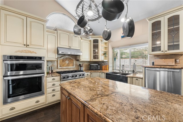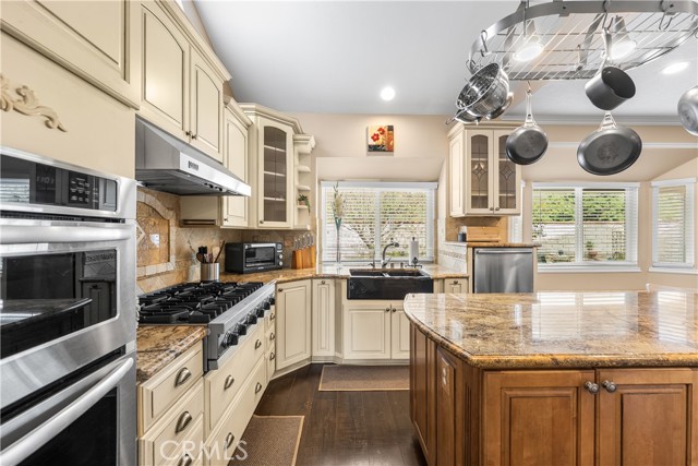 Welcome to your new home in a fantastic Saugus Neighborhood. You'll love the open concept, spacious feel of this 4 bedroom/3 bath home nestled in a friendly cul-de-sac where neighbors still look out for each other. Take a look at the beautiful, French Country, gourmet kitchen, complete with high-end appliances like a 6-burner Viking gas range and hood, a super quiet Bosch raised dishwasher, double convection ovens, a wine fridge, trash compactor, farm sink, beveled leaded glass cabinet inserts, soft-close drawers, granite counter tops, custom travertine backsplash, large center island and more! Take a look at the newly remodeled downstairs bathroom. You will find hard surface floors from the front double doors to a back French door which leads to a low-maintenance yard that includes a pond and fruit trees, such as peach, fig, apple, Asian persimmon, and grape vines. The large master suite has double sinks, a garden tub and a spacious walk-in closet with custom built-ins. Relax on the front patio and enjoy the cool nights and view of the near-by 12 acre community park. Award-winning schools make this a sought-after community. No Mello Roos, or HOA costs and a one year home warranty round out the fantastic features of this special home.