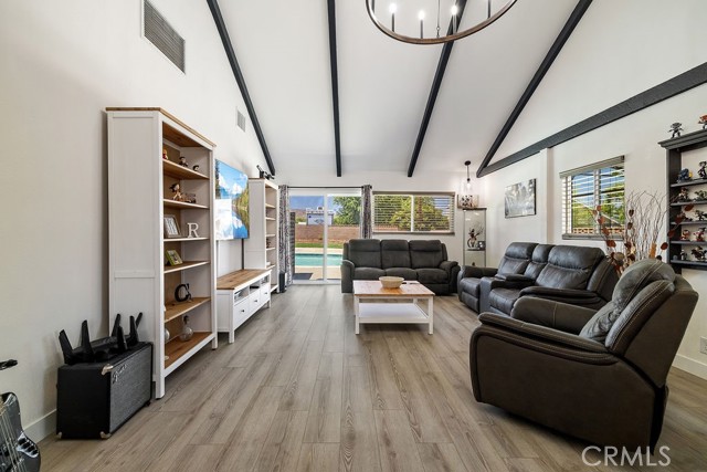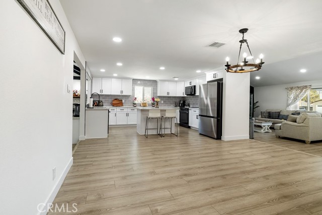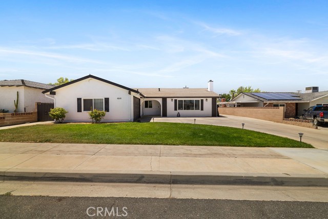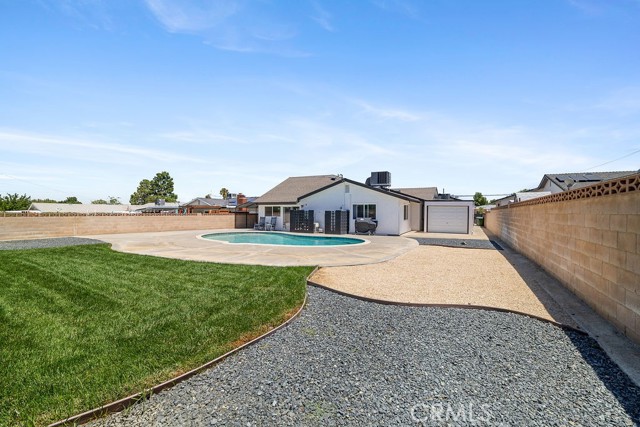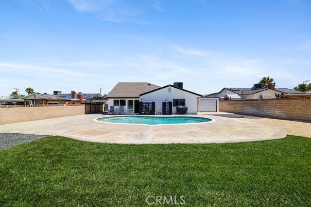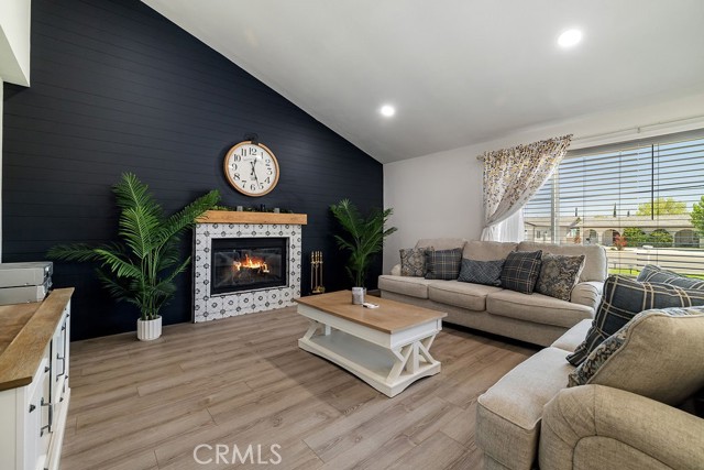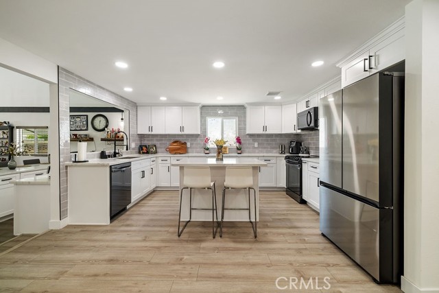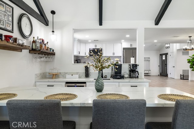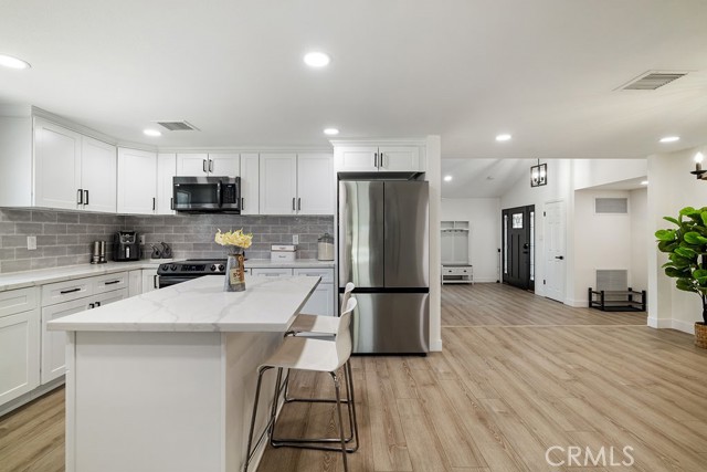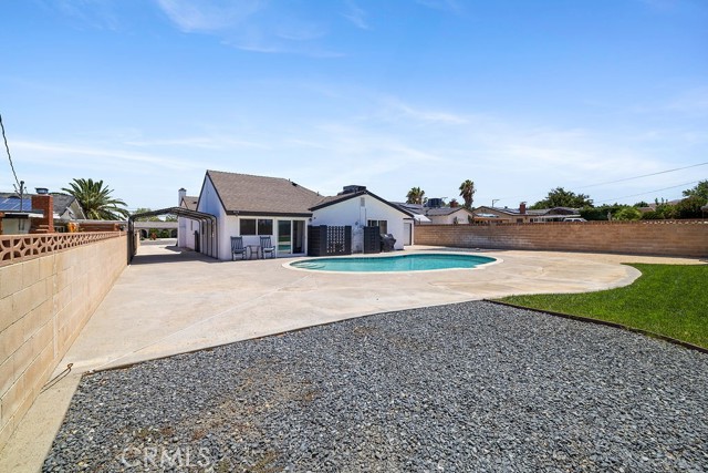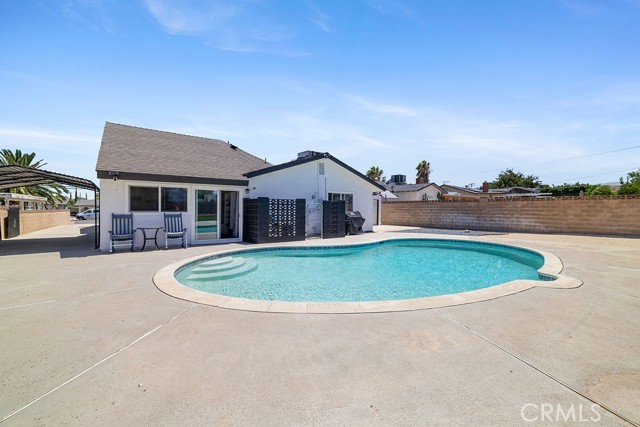 Brand New Roof! Gorgeous, newly remodeled 5 room, 2 bath, single story, pool house. Farmhouse inspired. Amazing 2,430 sq foot living space that welcomes you with an open-concept floor plan. View of backyard pool upon immediate front door entry. The entire house flows effortlessly. Formal living room with fireplace. Modern kitchen featuring quartz counter tops, a chic tile backsplash, a center island and stainless-steel appliances. Microwave, dishwasher, refrigerator and stove are included with the sale! A second island is found in the wet bar that is connected to the second living room creating the perfect setting for entertaining! Sit down and enjoy a glass of wine or a cup of coffee watching the sunset or the sparkling pool. Everything in this sleek home is 2 yrs old, floors, fans, chandeliers, doors, windows, blinds, garage door, pool equipment and heater, you name it! Independent laundry room equipped with cabinets and a utility sink. Electric washer & dryer also included. A custom-built shower glass door was made for the master bedroom along with dual sink quartz counter tops. Property includes a back shed/storage room, RV access, private parking and exterior lighting throughout. Welcome to your new home!