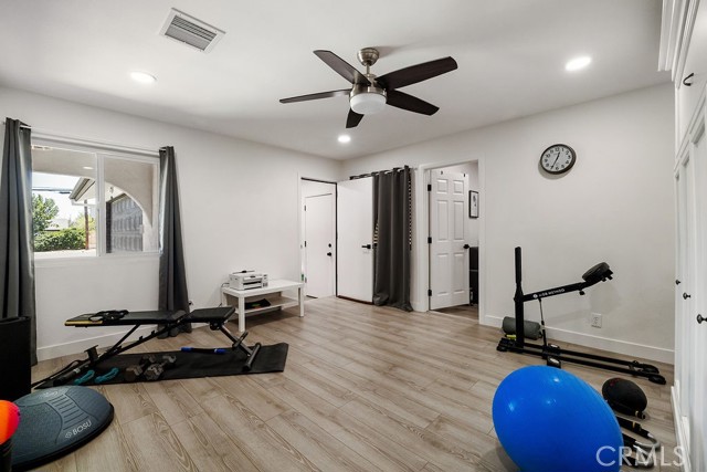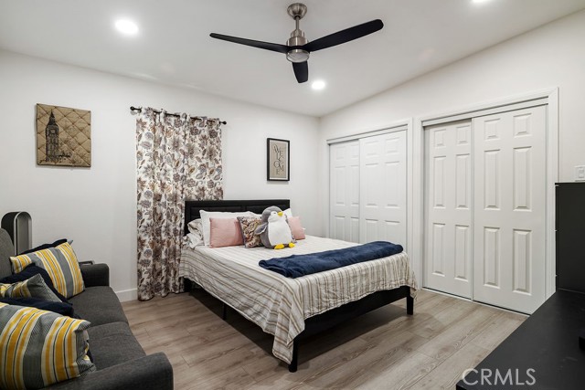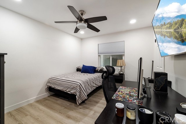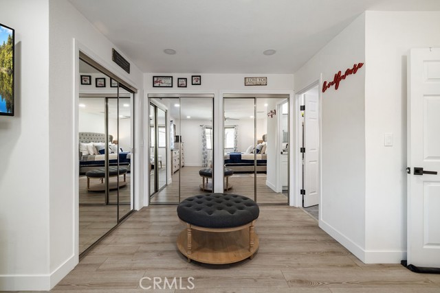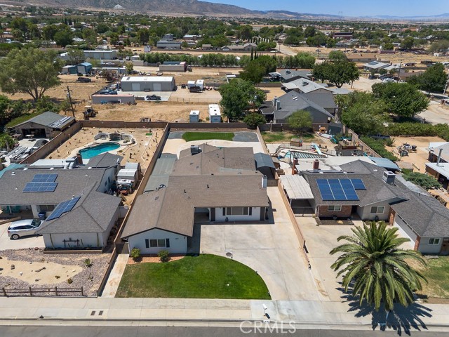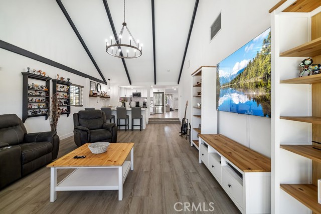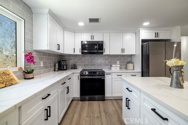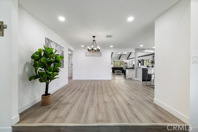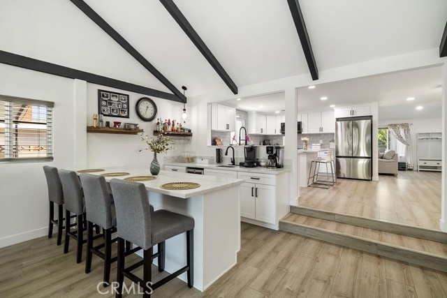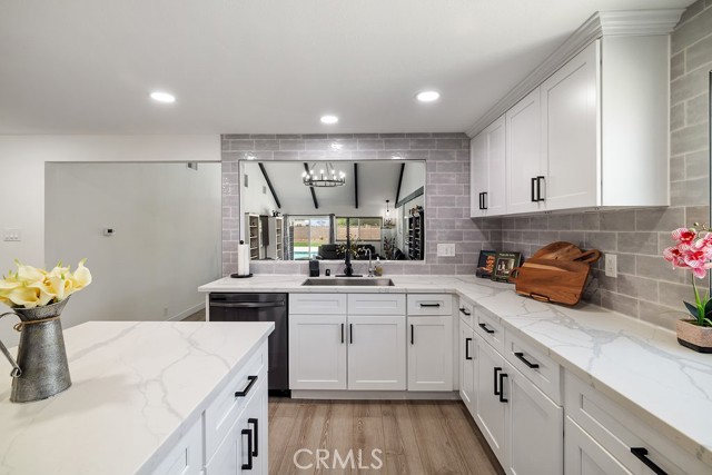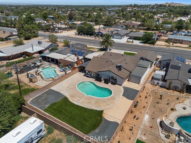 Brand New Roof! Gorgeous, newly remodeled 5 room, 2 bath, single story, pool house. Farmhouse inspired. Amazing 2,430 sq foot living space that welcomes you with an open-concept floor plan. View of backyard pool upon immediate front door entry. The entire house flows effortlessly. Formal living room with fireplace. Modern kitchen featuring quartz counter tops, a chic tile backsplash, a center island and stainless-steel appliances. Microwave, dishwasher, refrigerator and stove are included with the sale! A second island is found in the wet bar that is connected to the second living room creating the perfect setting for entertaining! Sit down and enjoy a glass of wine or a cup of coffee watching the sunset or the sparkling pool. Everything in this sleek home is 2 yrs old, floors, fans, chandeliers, doors, windows, blinds, garage door, pool equipment and heater, you name it! Independent laundry room equipped with cabinets and a utility sink. Electric washer & dryer also included. A custom-built shower glass door was made for the master bedroom along with dual sink quartz counter tops. Property includes a back shed/storage room, RV access, private parking and exterior lighting throughout. Welcome to your new home!