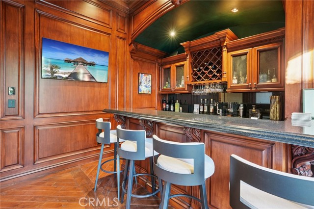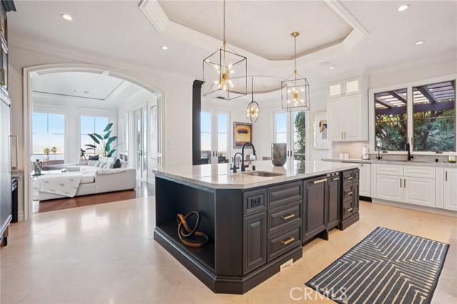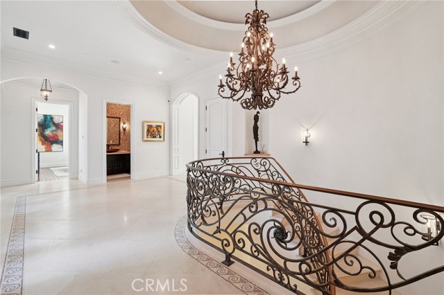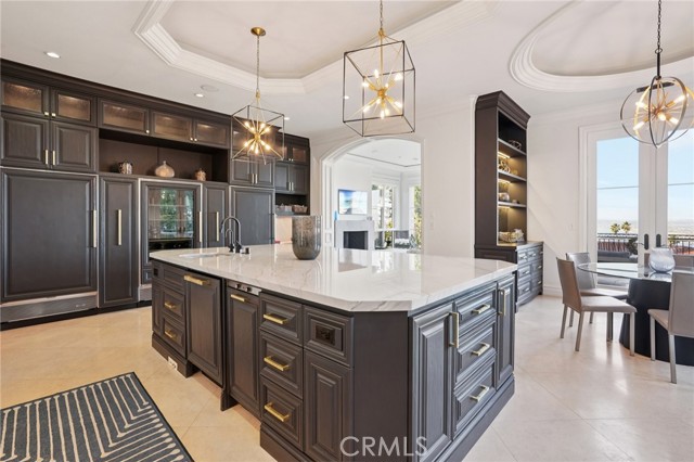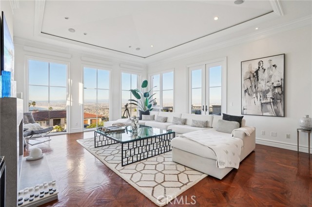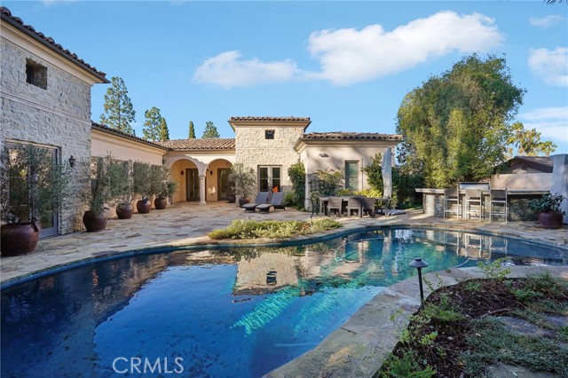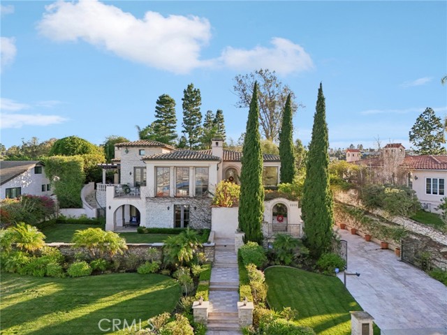 Old-world Tuscan charm meets elevated coastal living in a home that knows how to make an entrance—and then casually steals the show. With nearly 6,500 sq ft of light-filled living, this Palos Verdes Estates beauty delivers grand scale without a hint of stiffness. Think impressive, inviting, and surprisingly easy to live in. The main level includes a chef’s kitchen where weeknight dinners turn into lingering conversations—and full-blown celebrations feel effortless. Quartzite countertops, an oversized island, dual sinks, triple Wolf ovens, and multiple Sub-Zero refrigerators make hosting feel natural, while the fully equipped butler’s pantry (yes, it has its own Wolf oven and wine fridge) keeps things running smoothly behind the scenes. Custom barn doors add a touch of charm, and statement chandeliers and tray ceilings bring just the right amount of drama. Walls of glass frame sweeping ocean and city coastal views which flood the home with sunshine, while architectural moments—like the show-stopping spiral staircase—deliver wow factor in all the right places. Five generously sized en-suite bedrooms (four of them conveniently located on the main level) ensure comfort and privacy for everyone, and the primary suite feels like a private spa escape you’ll look forward to retreating to every night. A rich, wood-clad English pub brings a cozy old-soul vibe—perfect for laid-back evenings and well-earned nightcaps. Plus, the main floor offers easy access to nearly every corner of the home plus the backyard, making indoor-outdoor living a breeze. Step outside and the vibe shifts to full-on resort mode. Spanning nearly 19,000 sq ft, the grounds feature a pool and spa, outdoor kitchen with built-in BBQ, fire pit, multiple patios for gathering, and grassy spaces perfect for play, lounging, or sunset toasts. When it’s time to switch gears, the elevator makes heading downstairs effortless, whether you’re settling in for movie night in the private theater, hosting guests in the guest bedroom, or breaking a sweat in the flexible bonus room—currently living its best life as a gym. The expansive front lawn creates a grand arrival, but it’s the sweeping coastline views and iconic Queen’s Necklace from both levels that really steal the spotlight—especially when the lights start to sparkle. Designed for unforgettable moments, easy entertaining, and everyday living that feels a little more magical—this is one home that knows how to have a good time (and look very good doing it).