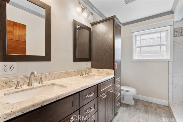 Welcome to College Estates!! Don't miss out on this incredible opportunity to own this lovingly enhanced single-story home located in a desirable location. As you approach, enjoy the tasteful curb appeal, nice wide driveway and water-wise landscape aspects. Upon entry, also enjoy the bonus room located just off the front entry that can service a multitude of options and leads to the wonderfully updated bathroom with private shower. The updated kitchen features an abundance of upgraded cabinets and beautiful granite countertops, island with storage and power outlets, and a custom backsplash. The kitchen also opens up to the family room with large bay window and amazing backyard views, and features the French Doors that conveniently lead to the back yard and gazebo, making it a great option for entertaining. The primary bedroom features it's own private French door and access to the back yard. The remaining bedrooms are also generously sized. The hallway full bath is also tastefully remodeled and features a tub and shower combo, dual vanity and more! The amazing back yard features a wonderful gazebo for entertaining, plenty of hardscape, grass area, the list goes on! Other notable features include the solid surface flooring, neutral paint scheme throughout, beautiful arches going between the rooms and hallway, recessed lighting, crown molding, ceiling fans, outdoor sheds, tankless water heater, and located on a desirable tree-lined street, in proximity to freeways, shopping, restaurants, parks, schools and Cal State Long Beach! Act now, before it's too late!