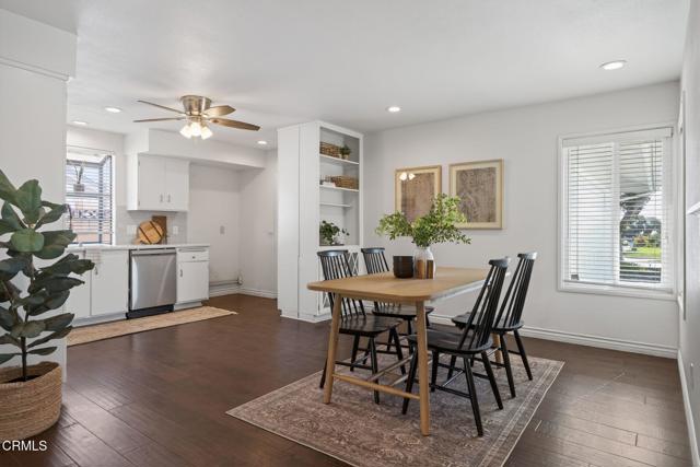 Welcome to this charming single-level home in East Ventura! From the moment you arrive, you'll appreciate the inviting curb appeal featuring an extended driveway, beautifully landscaped and low maintenance front yard, and freshly painted exterior accented by striking dark forest green double doors and red bricks entry.What I love about this home is that although it offers a modest 1,328 SqFt, the layout feels open, light, and functional from the moment you walk in and then with hardwood flooring throughout the main living areas. The living room offers a warm and welcoming atmosphere with open floating shelving and a cozy fireplace as the focal point. The kitchen opens seamlessly to the dining area and features ample cabinetry, stainless steel dishwasher, range hood, a stylish backsplash, and a lovely bay window that fills the space with natural light.The home offers 3 bedrooms and 2 full bathrooms, both updated with new vanities, modern light fixtures, and tasteful backsplash finishes. The primary bedroom is located at the front of the home and includes its own en-suite bathroom.Originally built in 1964, this home has seen numerous major upgrades, including copper plumbing installed in 2015, a replaced shingle roof, and central heating with a newer furnace installed. Additional improvements include dual pane windows, two sliding glass doors one from the living room and one from a bedroom for convenience, As well as textured walls, removal of acoustic ceilings throughout, and upgraded LED lighting to name a few more improvements!The spacious backyard is designed for easy maintenance, fruit trees, features a wood patio covering for shade during warm nights, and offers RV parking. Great location by parks, shopping, schools, and freeway access! Home is move in ready for you!