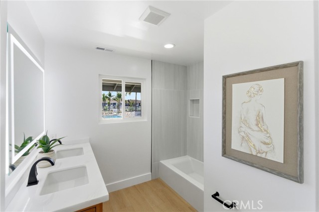 Stylishly Remodeled Monticello Townhome in Prime Location Welcome to Monticello Townhomes – where modern upgrades meet timeless comfort. This beautifully remodeled 3-bedroom, 2-bathroom 2-car garage home has been thoughtfully updated throughout with high-end finishes and meticulous attention to detail. Step inside to discover a brand-new kitchen featuring elegant marble countertops, wraparound counters, and new stainless-steel appliances. Both bathrooms have been completely redesigned with Kohler fixtures, modern sinks, a soaking bathtub, and luxury shower valves for a spa-like experience. Additional upgrades include a new HVAC system, new interior and exterior doors – including glass sliders and a stylish front entry, recessed lighting throughout, and fresh pebble tech coating in the front and breezeway areas. The garage features epoxy flooring, adding both durability and a clean, polished look. Enjoy the thoughtful touches such as a pocket door creating a true master suite, updated water heater, and new front landscaping that enhances curb appeal. Located just minutes from major freeways and the Orange County Fairgrounds, this turnkey townhome offers the perfect blend of convenience, style, and functionality. Don’t miss the opportunity to call this stunning, move-in-ready Monticello townhome your new home!