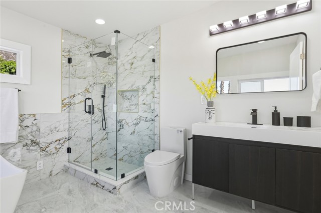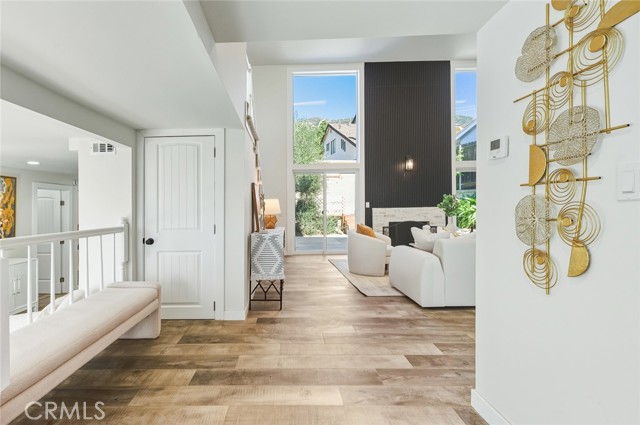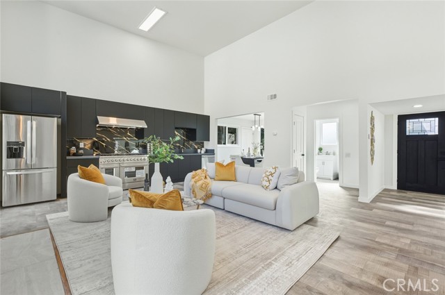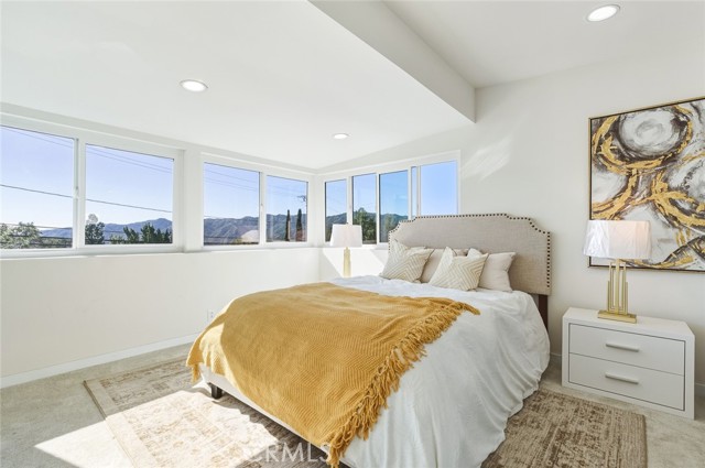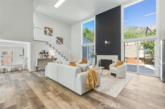 BEAUTIFULLY RENOVATED TWO-STORY HOME offering 4 bedrooms and 4 bathrooms with a bright, open layout and extensive modern upgrades throughout. The entry opens to a DRAMATIC HIGH-CEILING LIVING ROOM filled with natural light and anchored by a STRIKING FIREPLACE, creating an impressive yet welcoming main living space. This home features FULL INTERIOR RENOVATION, including NEW FLOORING, NEW HVAC SYSTEM, NEW WINDOWS, updated electrical systems, and refreshed interior finishes. The COMPLETELY REMODELED MODERN KITCHEN showcases upscale finishes, sleek design, and HIGH-END APPLIANCES, seamlessly connecting to a SUN-FILLED DINING AREA ideal for both everyday living and entertaining. The main level includes a PRIVATE EN-SUITE BEDROOM, providing convenience and flexibility. Two additional SPACIOUS, LIGHT-FILLED BEDROOMS share a well-appointed bathroom. Upstairs, the expansive PRIMARY SUITE WITH MOUNTAIN VIEWS serves as a private retreat, featuring a LARGE NEWLY UPDATED BATHROOM with a separate soaking tub, walk-in shower, and contemporary fixtures. The backyard offers abundant sunlight, mature landscaping, and a WOOD DECK — perfect for outdoor relaxation and gatherings. GENEROUS PARKING SPACE accommodates multiple vehicles. A MOVE-IN READY HOME combining modern upgrades, natural light, and a functional layout in a comfortable residential setting.