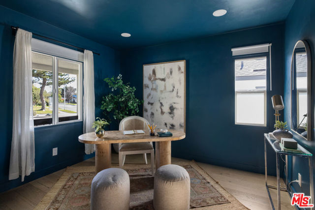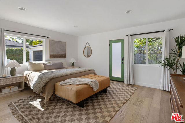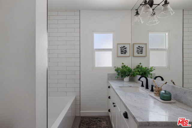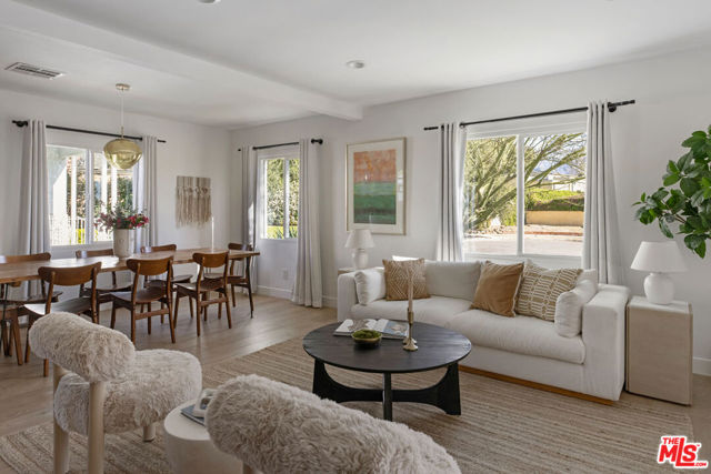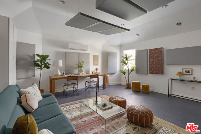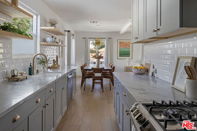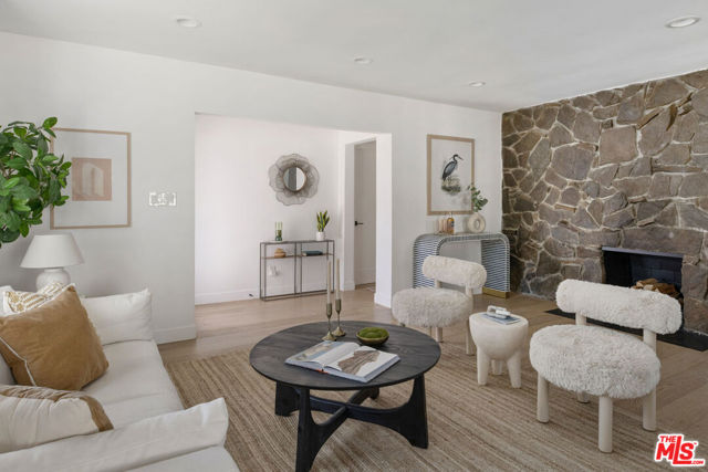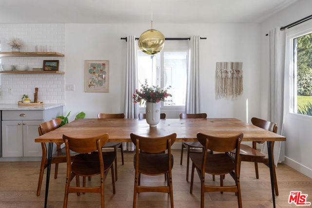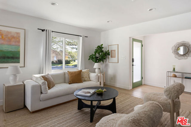 On a quiet cul-de-sac in Altadena, this four-bedroom Traditional is handsome as can be, clad in board-and-batten and stone. The layout feels wonderfully open, filled with sunlight and anchored by a stone fireplace wall adding texture and warmth. The beautifully updated kitchen presents quartz countertops, stainless appliances, a full tile backsplash, tasteful cabinetry, and floating shelves. Four spacious bedrooms include a tucked-away ensuite primary with an impressive closet system and outdoor access. The private backyard is a wonderful expanse to host friends and family, gather around the fire pit, and dine under the stars. The large detached garage, converted to a recording studio with mini-split heating and cooling, sets the stage for creative use. The fully remediated home includes AC/heat, EV charger, and updated systems. You are a short distance from local favorites Kismet Rotisserie, Home State, Good Neighbor Bar, and more.