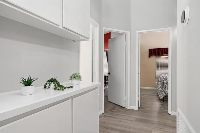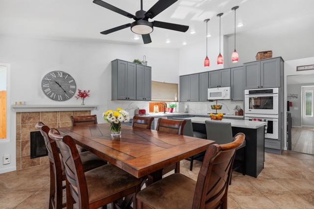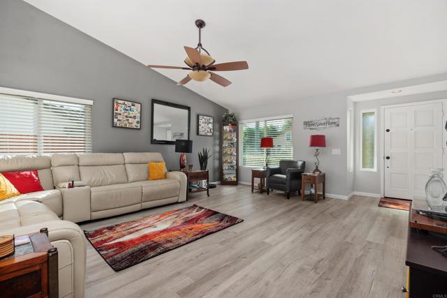 In the heart of Rancho Del Oro, this well-maintained and thoughtfully renovated 3 bedroom ONE-STORY residence combines both comfort and efficiency, creating a truly move-in-ready experience! This home has been meticulously upgraded throughout with designer choices and finishes, including kitchen & bath remodels. (PLEASE SEE LIST OF UPGRADES IN DOCUMENT TAB). The living room and dining areas are generously sized, featuring 18-foot vaulted ceilings that create an open and airy atmosphere. Warm paint colors enhance the inviting feel of these spaces, while large windows flood the rooms with natural light, making the home bright and welcoming. The luxury vinyl plank flooring, complemented by the contemporary palette, adds to the overall sense of comfort and elegance throughout these main living areas. The family room (being used as a dining area) also boasts a vaulted ceiling and is anchored by a welcoming fireplace adorned with tile, providing both style and warmth. This space seamlessly connects to the kitchen making it ideal for relaxation and gatherings. The spacious, remodeled kitchen is both stylish and highly functional, offering plenty of space for preparing meals and hosting gatherings. Thoughtfully designed, it features an abundance of custom cabinetry with pull outs and soft close features, a double oven, recessed lighting, under cabinet lighting, a large quartz island with pendant lighting and generous counter space to accommodate all your culinary needs and entertaining aspirations. The kitchen is designed for seamless California indoor/outdoor living, featuring sliding doors that open directly to the expansive pool sized backyard. This private outdoor space is notably larger than most in the area, offering plenty of room for entertainment, relaxation, or the potential addition of a pool or expanding the home, if desired. The primary retreat offers exceptional privacy, thoughtfully positioned away from the secondary bedrooms to ensure a peaceful and quiet environment. A large sliding glass door provides direct access to the tranquil and inviting backyard, seamlessly blending indoor comfort with outdoor serenity. The ensuite bathroom showcases contemporary finishes, featuring a separate shower area, dual vanity sinks creating a luxurious and functional space for relaxation and daily routines. It also features a walk-in closet with built-ins. The secondary bedrooms are generously sized, providing space for comfort and functionality. All the bedrooms have ceiling fans. Notably, one of the secondary bedrooms features a walk-in closet with built-ins, offering convenient and enhanced storage options. The two-car garage offers a generous amount of storage space, providing plenty of room to keep belongings organized, store seasonal items, or accommodate recreational equipment. With its seamless blend of style and function, this Rancho Del Oro residence offers a rare opportunity to enjoy coastal North County living at its best—just minutes from freeway access, beaches, schools, dining, and top local amenities. Thank you for showing! Buyer to verify square footage, room dimensions, lot size, HOA fees, school district and inclusions, and condition of property prior to the close of escrow.