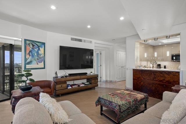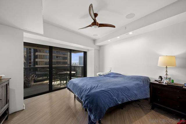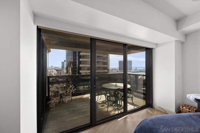 Experience waterfront living at Harbor Club with unobstructed views of San Diego Bay, the Coronado Bridge, and Petco Park beyond the skyline. Banks of windows fill the residence with natural light and frame the ever-changing waterfront, from sailboats gliding by during the day to city lights reflecting on the water at night. The open living area extends to a private balcony, ideal for enjoying the views or hosting guests, while the bedroom also offers direct balcony access, creating a seamless indoor-outdoor connection and a front-row vantage point from sunrise through evening. The kitchen is well appointed with stainless LG appliances, custom marble countertops and backsplash, recessed and under-cabinet lighting, and an eat-at bar with added storage. The primary bedroom features a remodeled ensuite bath with a step-in shower. Additional highlights include an electric fireplace, stackable Maytag washer and dryer, and a secured parking space with EV charging capability. Claim a Marina District home where each day unfolds with water, sunlight, and iconic views. Residents of the Harbor Club are treated to an array of lavish, resort-inspired amenities that encompass a round-the-clock front desk service, a state-of-the-art gymnasium, an exquisite pool deck, a sociable club room, and a versatile library/business center, among numerous other perks. Nestled in the much-coveted Marina District, the Harbor Club boasts unparalleled ease in traversing the neighborhood on foot, granting effortless access to an array of transportation options, delectable dining establishments, retail therapy, the iconic ballpark, the pulsating Gaslamp Quarter, the artsy East Village, and the scenic Embarcadero – an idyllic setting for serene walks alongside the bay.