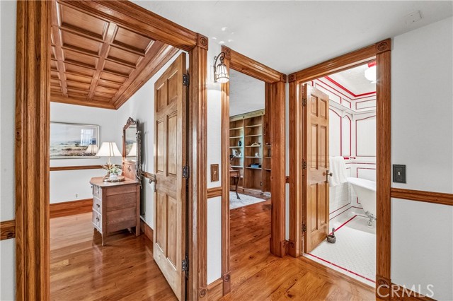 You will never see another home like this. An exquisite, handcrafted three-bedroom, three-bath residence quietly tucked within the sought-after Sea Bluff Canyon community, a small, storybook enclave affectionately known as "Little Big Bear," set amid acres of protected parkland and natural preserve, yet just minutes from the beach. This home is one of the few homes that backs directly to preserved canyon parkland, with walking trails leading all the way to Huntington Beach and Newport Beach. Here, trees sway gently in the breeze, nature lovers enjoy the trails throughout the day, and in the evening, the moon rises softly above the canopy, with the sounds of birds and frogs as a rare, peaceful soundtrack in a coastal setting. This enchanting location provides the perfect backdrop for the home's extraordinary craftsmanship. Inside, the home unfolds with dramatic volume ceilings, exposed wood beams, clerestory windows, and exquisite custom millwork throughout. Rich hickory floors ground the space, while architectural archways and thoughtfully framed openings create a sense of beauty and permanence. A stunning mezzanine gallery overlooks the great room, featuring floor-to-ceiling bookshelves and a striking stained-glass window crowning the space, a perfect lounge, library, or retreat. The kitchen and bathrooms showcase custom cabinetry, glass-front uppers, and finely detailed tilework composed of the smallest, most precise pieces, thoughtfully chosen finishes, a testament to craftsmanship rarely seen today. This three-bedroom, three-bath home offers exceptional flexibility and privacy, with two en-suite bedrooms opening directly to a rare expanse of protected green space. This uninterrupted natural backdrop feels worlds away from everyday suburbia. The lower patio, designed as a tranquility garden, includes a gate that opens directly to Canyon Park walking trails. The third bedroom is ideal for guests, an office, or a creative space. Multiple outdoor living areas include two south-facing patio/balconies and a wall-to-wall front balcony. Enjoy resort-style amenities, including a pool, spa, clubhouse, and tennis courts. Surrounded by nature, yet conveniently located within minutes of premier dining, nightlife, and shopping—from the Newport Beach peninsula and Pacific City in Huntington Beach to the Triangle, SOCO Mix, 17th Street in Costa Mesa, South Coast Plaza, Fashion Island, and Lido Marina Village.