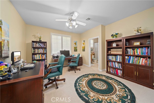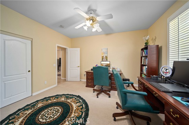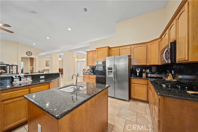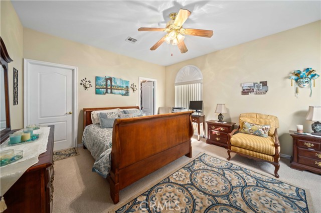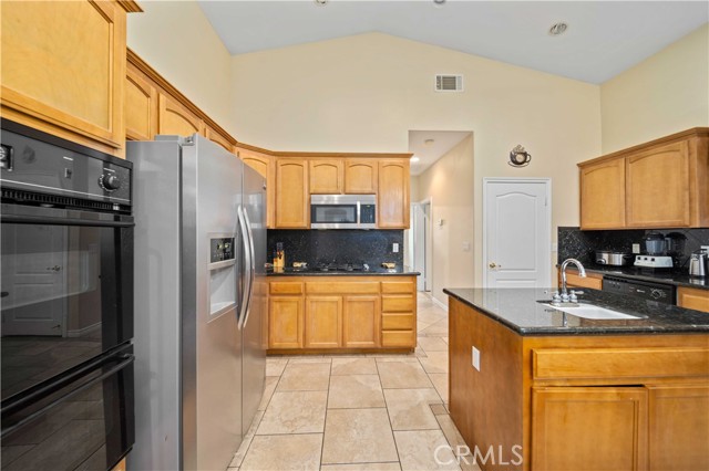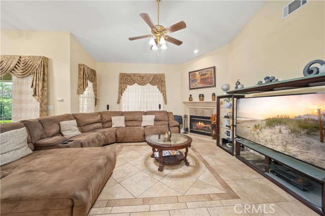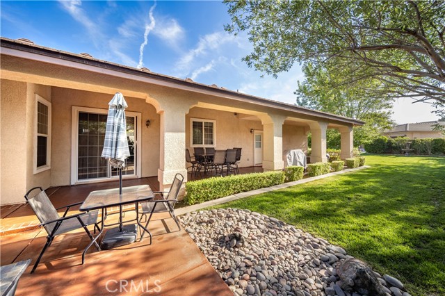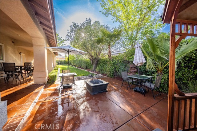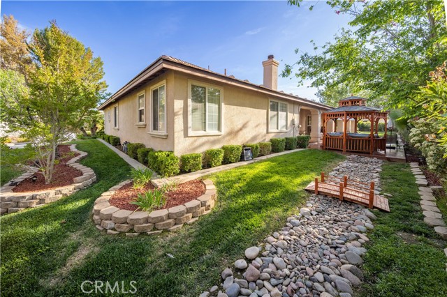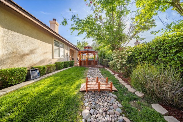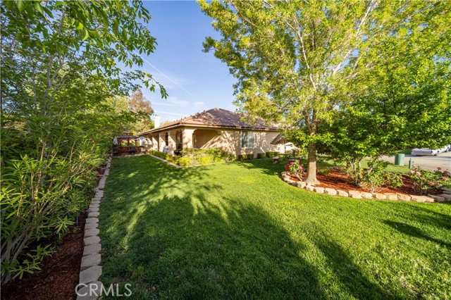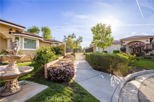 PAID SOLAR IS INCLUDED WITH THIS STUNNING HIDDEN GEM SINGLE STORY HOME IN THE PRESTIGIOUS AV FAIRWAY ESTATE OF WEST PALMDALE, just steps from the 7th hole of the Antelope Valley Country Club golf course!! Nestled on a quiet cul-de-sac, this impressive property offers over 3,000 sq. ft. of beautifully updated living space on a sprawling 16,403 sq. ft. lot!! Owner is in the process of adding ALL NEW WROUGHT IRON GATES AND FENCING in the backyard and across the Westside front side yard!! The open floor plan features soaring cathedral ceilings, a spacious family room with cozy fireplace, formal living room, and elegant dining area!! The gourmet kitchen shines with black granite countertops, upgraded appliances including double ovens and NEW gas range, NEW dishwasher and a sunny breakfast nook!! This thoughtfully designed home offers 4 bedrooms and 3 baths, including a luxurious master retreat with double-door entry, spa-like bath with Roman-style jacuzzi tub, separate shower, dual sinks, and a large walk-in closet!! Secondary bedrooms are generously sized, with a convenient Jack & Jill bath!! Upgrades include radiant heated tile floors, Berber carpet in bedrooms, plantation shutters, custom draperies, central heat/air, and PAID SOLAR for year-round savings!! Step outside to your private backyard oasis featuring lush landscaping, rose bushes, fruit trees (apricot, cherry, plum, apple, blackberry), a full-length covered patio, and an above-ground jacuzzi under a gazebo. The 3-car garage includes a home gym area for added versatility!! Located in a quiet, established neighborhood with golf course access, this home blends elegance, comfort, and functionality; truly a rare find!!