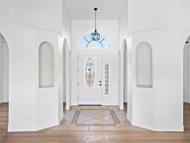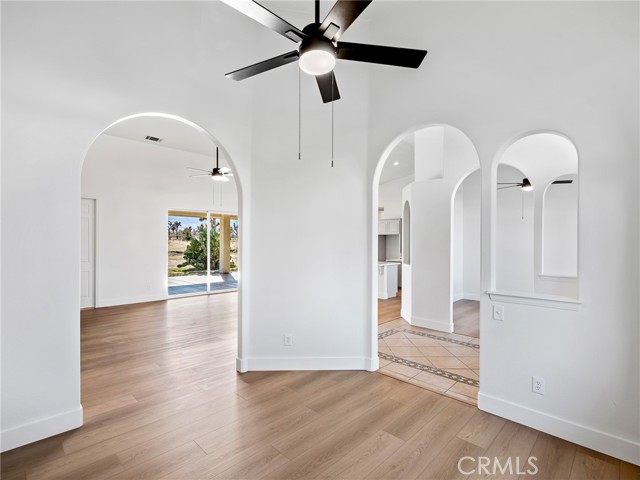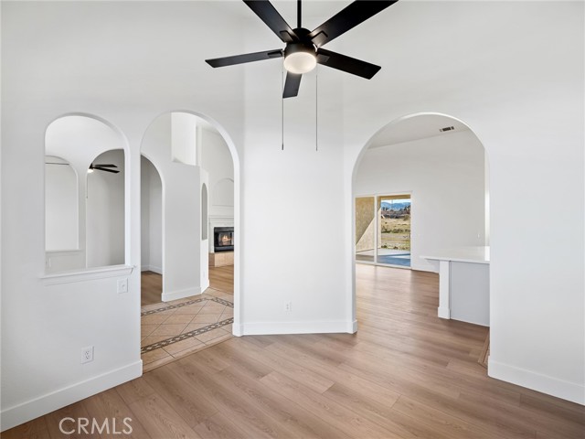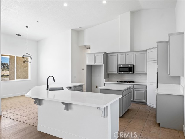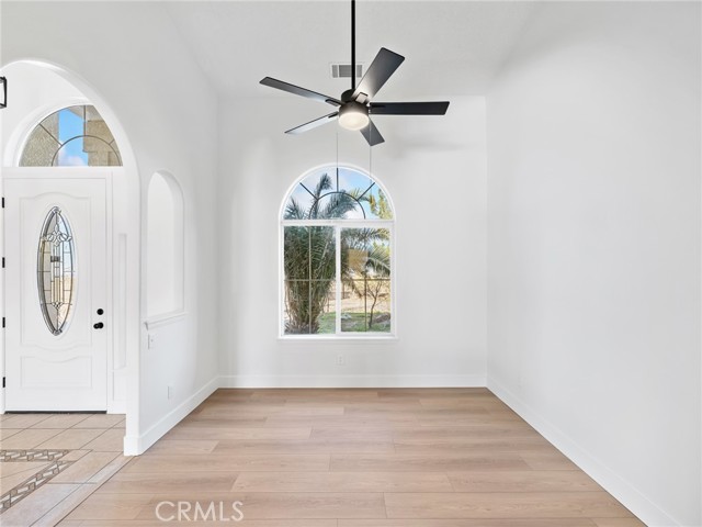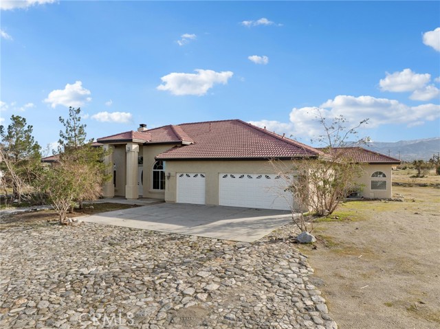 Beautiful, large, and newly renovated! This enormous 4 bedroom (+ bonus) 3 bath home offers 3,026 square feet of living space with a sought after floor plan that offers a great room with high cathedral ceilings that encompasses the entry, dining area, family room, living room, open kitchen and breakfast nook. The split floor plan has the primary suite with walk in closet and spacious primary bathroom with separate tub and shower and dual vanities on one side of the home with one other bedroom, hall bathroom and laundry. The opposite side of the home has the other 2 bedrooms, another hall bath, and large bonus/rec room located on the other side of the home. The bonus room does not have a closet but would be easy to add if someone chose to make it a 5th bedroom. The home has new exterior paint on the outside with a large covered back patio with sweeping views of the mountains to the south. Inside the home is also all freshly painted with new baseboards, laminate wood flooring throughout common areas, and new carpet in the bedrooms. The kitchen has been refreshed with modern painted cabinets, new solid quartz countertops and new stainless steel appliances. The home is bright, inviting, and open making it a wonderful place to call home. The laundry room has additional cabinets for storage and is located right off the attached 3 car garage. The property is full fenced and ready to become whatever you'd have in mind. Whether that's building an additional detached garage, adding rear landscaping, or setting up equestrian facilities you'll have more than enough space. Home is located close to pavement, within the Snow Line School District and is zoned for horses.