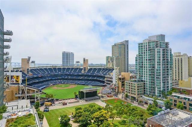 PREMIERE PETCO VIEW CONDO... See Home Plate & watch the game! Hear the crowd and relax in the comfort of your own home or walk across the street and YOU'RE IN THE BALLPARK! Stunning bay, city & ballpark views from TWO private balconies AND from inside this Penthouse residence... Definitely one of the most DRAMATIC & EXCITING views you'll ever see! Dynamite location in East Village, walk to everything. Arguably one of the BEST POSITIONED buildings in East Village and clearly a FAN FAVORITE! See Supplement... Well-appointed 2BD/2 BA with slab granite counters, stainless appliances, TWO generous balconies and washer/dryer in unit. Desirable location in East Village - Across the street from upscale fitness center, walk to coffee, restaurants, shopping and entertainment. Secure building with fitness center, community room, rooftop BBQ area that features large patio and views into Petco. TWO parking spaces in secure underground garage and storage area included. Rare opportunity!