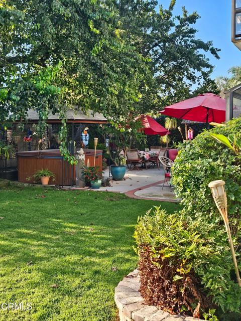 Located in the highly desirable Woodside Greens neighborhood of Camarillo, this 3 bedroom, 2.5 bath home offers approximately 2,050 square feet of well designed living space on an oversized 6,969 square foot lot. Just one block from Woodside Park and close to local schools, the location blends neighborhood charm with commuter convenience, offering easy access to the 101 freeway and Highway 1.Originally designed as a corner lot model, this elevation provides a uniquely private entrance since the front door does not face the street. A welcoming covered porch, brick planters, and mature landscaping create inviting curb appeal while preserving privacy.Inside, spacious living areas downstairs are ideal for gatherings, while all three bedrooms are upstairs and notably generous in size. The home has been lovingly curated over three decades, reflecting warmth and personality throughout. Custom built in cabinetry in the family room offers both function and character, with potential to convert to a wet bar thanks to its proximity to the laundry room. Even the laundry area enjoys natural light and views of the backyard.The nearly 7,000 square foot lot offers RV access capability, a highly sought after feature in Woodside Greens, providing flexibility for recreational vehicles, boats, or additional storage.The true showpiece is the backyard, designed with entertaining at its core. Multiple gathering zones create a seamless indoor and outdoor lifestyle. A brick accented patio centers around a built in firepit that naturally draws guests together. The above ground spa sits beneath a shaded structure, complemented by a fully realized Tiki bar that gives the space a private resort atmosphere. Lush landscaping, mature trees, fruit bearing citrus, colorful umbrellas, and curated details add depth and ambiance.There is also generous lawn space for recreation, yet the layout encourages hosting, relaxing, and celebrating. As evening falls, soft lighting, the glow of the firepit, and the warmth of the spa transform the yard into an inviting retreat. This home combines distinctive architecture, RV access capability, and an entertainer's backyard that truly elevates everyday living in Camarillo's temperate Mediterranean climate.