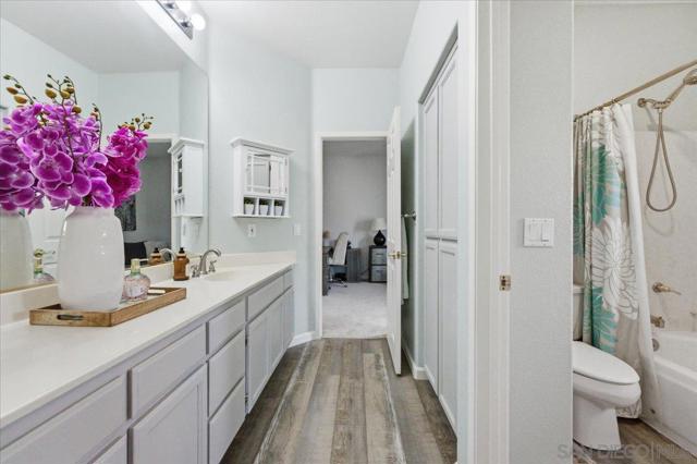 Bright, airy, and beautifully upgraded, this 3-bedroom, 2.5-bath home is tucked away on a quiet cul-de-sac inside a gated Rancho San Diego community offering privacy and security. Step inside to soaring vaulted ceilings and an open, light-filled layout featuring updated hardwood flooring, recessed lighting, and expansive windows that frame scenic mountain views from the bedrooms. The remodeled kitchen is designed for both everyday living and entertaining, showcasing granite countertops and backsplash, updated cabinetry, stainless steel appliances, and generous counter seating that flows seamlessly into the main living area. Recent improvements include new windows (approx. $20K investment), new carpet, a newer AC unit (1–2 years), and a partially replaced roof, giving peace of mind and modern comfort. The spacious primary suite and secondary bedrooms enjoy tranquil mountain vistas, while the functional floor plan offers flexible living and dining spaces ideal for gatherings. A private backyard patio extends your living space outdoors. Residents enjoy resort-style amenities with low HOA fees, including a community pool, tennis court, basketball court, and playground. Conveniently located near shopping, dining, and top local amenities, this move-in-ready home combines style, upgrades, and an unbeatable gated setting in one of Rancho San Diego’s most desirable neighborhoods.