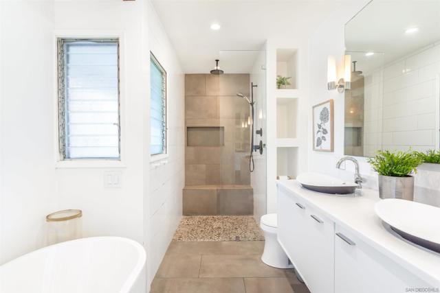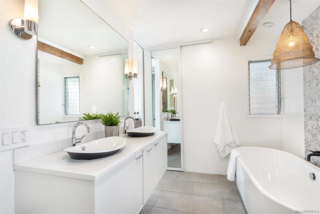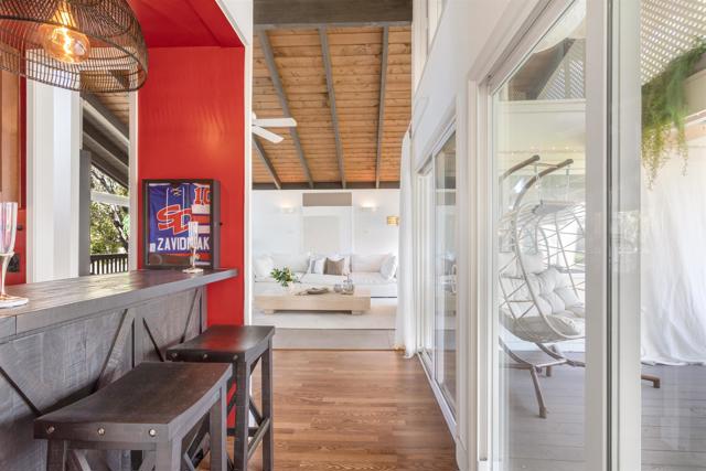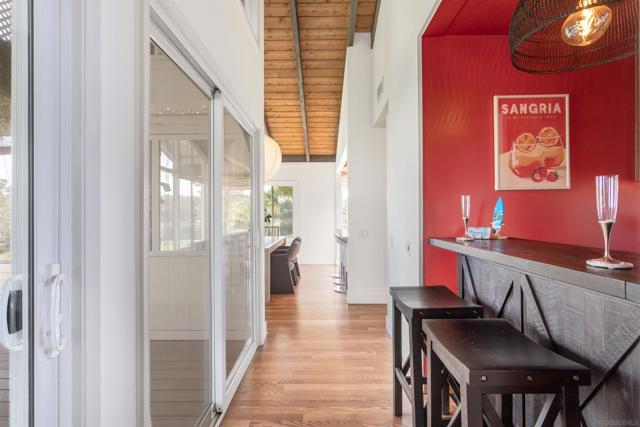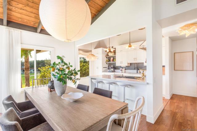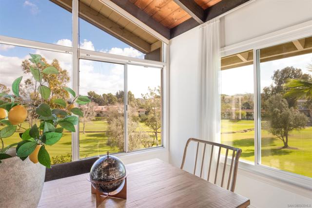 Experience timeless California Mid-Century design with seamless indoor-outdoor living at this amazing home. Vaulted tongue-and-groove wood ceilings and walls of glass define the open layout, filling the home with natural light and framing panoramic east-facing views of the 16th hole of Rancho Bernardo Golf Course. Meticulously remodeled, this 1,773 sq ft residence offers 2 bedrooms and 2.5 baths with Carrara marble countertops, premium appliances, Restoration Hardware fixtures, Italian ceramic flooring, and owned solar. The primary suite is a private retreat featuring a white tongue-and-groove ceiling and a spa-inspired bath with a freestanding soaking tub and designer fixtures. Enjoy expansive outdoor living ideal for sunrise and sunset views. Located in the intimate 31-home Bernardo Village Green community within the award-winning Poway Unified School District. Owners have access to the nearby Rancho Bernardo Swim & Tennis Club with pools, hot tubs, basketball, tennis, pickleball, gym, playground, and more for less than $50 per month. Includes two single-car garages, a golf cart garage, and dedicated guest parking space.