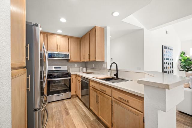 Recently updated, this Belsera residence offers a bright and welcoming place to call home. Sunlight pours in through large windows, highlighting an open, well-designed layout with high ceilings. The expansive living and dining areas feature a cozy fireplace and open to a private patio—ideal for relaxing and enjoying San Diego’s sunshine. Thoughtful upgrades include new luxury vinyl plank flooring, fresh designer paint, quartz countertops, a new stove and oven, and more. The home includes an attached one-car garage with ample storage, along with an additional assigned carport. Enjoy a resort-style community surrounded by lush landscaping, complete with two swimming pools, picnic and BBQ areas, volleyball courts, scenic walking paths, and direct access to Mission Trails Park. Peaceful and secluded, yet conveniently close to freeways, schools, parks, shopping, and dining—this home truly offers the best of both worlds.
