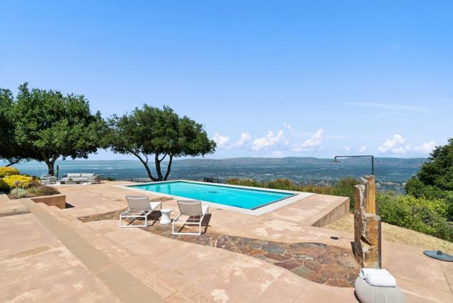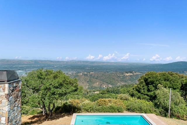 Exceptional opportunity to acquire a rare Cupertino estate with panoramic views of Silicon Valley. This property includes a luxury residence, a fully operational winery, and 0.5 acres of mature Cabernet Sauvignon estate vines, all set amongst world-class wineries. A custom-built entertainment building is designed for high-capacity use, offering soaring ceilings, expansive windows overlooking a solar heated pool with outdoor shower, full bathroom, dual fireplaces, wet bar, family room, loft, office with built-in cabinetry, integrated audio system, and an observatory. The residential component consists of 3 bedrooms and 2 full bathrooms, with views from every room, including a primary suite with walk-in closet and ensuite bath. The gourmet kitchen is equipped with high-end appliances, quartz countertops, and a commercial dishwasher. The winery building is a full production facility featuring a bottling room, 4 large fermentation tanks, cellar, temperature controlled storage, all for operational use or flexibility for alternative uses. Fully owned solar panels offset the majority of energy costs, and there are 2 separate two-car garages (one with EV charging), and on-site parking suitable for large events. Conveniently located near hiking trails, wineries, and Cupertino schools.