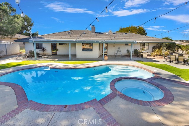 Rare opportunity to own a Hesperia POOL HOME in a highly sought-after neighborhood where homes rarely come available! Tucked away on a quiet cul-de-sac, corner lot in one of Hesperia’s most desirable neighborhoods, this well-cared-for 4-bedroom, 2-bath home offers comfort, space, and an entertainer’s dream backyard. Fresh interior paint and professionally cleaned carpets create a move-in-ready feel, while the thoughtful split-floor plan provides privacy and functionality for everyday living. Inside, you’ll find generously sized bedrooms — three featuring walk-in closets — and a warm, inviting living space centered around a beautiful brick fireplace. The pride of ownership throughout makes this home an exceptional opportunity with plenty of potential to make it your own. Step outside to your private backyard retreat designed for entertaining. Enjoy the in-ground pool and spa powered by an upgraded 300,000 BTU heater, highlighted by a stunning waterfall and underwater bench seating. Meticulous landscaping, bistro lighting, multiple seating areas, and a shaded covered patio create the perfect setting for gatherings both day and night. Located just south of Ranchero Rd with quick access to Summit Valley/Highway 138 - this property provides an easy route for commuters. Don't miss out on this rare opportunity, schedule an in-person showing today!