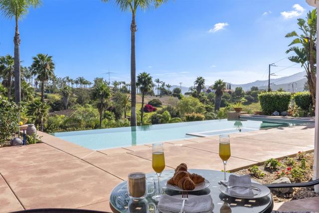 Set behind sweeping natural landscapes, 2821 Summit Drive is a rare Mediterranean ranch estate where refined architecture meets the quiet grandeur of North County’s rolling hills. Situated on two private acres, this single-level residence embodies effortless sophistication, offering an elevated lifestyle defined by space, privacy, and timeless design. Sunlit interiors unfold seamlessly toward expansive outdoor living areas, creating a fluid connection between home and horizon. At the heart of the estate, a saltwater infinity-edge pool frames panoramic views, transforming every sunrise and sunset into a cinematic experience. The grounds provide a canvas for bespoke living — from curated gardens and outdoor entertaining spaces to vineyard-inspired possibilities and an orchard featuring over 30 fruit trees (15 varieties of fruit). Thoughtfully designed for both intimate moments and grand gatherings, the residence balances warmth with scale and luxury with tranquility. Ideally positioned for serene seclusion yet moments from the conveniences of North County San Diego, this exceptional property represents a rare opportunity to own a private retreat where architecture, nature, and lifestyle converge. Amazing single story Mediterranean ranch with an infinity edge pool, 30 fruit tree orchard, PAID SOLAR and 16 chickens (14 hens / 2 roosters) included. Possibilities are endless! Luxury, convenience, privacy and views all converge in this rare opportunity to own a piece of paradise. Entire exterior painted in 2026.