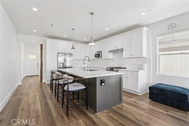 This home is all about easy, modern California living. Located on a quiet street in Thousand Oaks, this newer-built 4-bedroom, 3-bath home is filled with natural light, open spaces, and a comfortable flow that just feels right—from the main living areas straight out to the beautiful backyard. The main level is bright and open, with the kitchen, dining, and living spaces all connected that lead to the beautiful patio and backyard. The chef’s kitchen is the heart of the home, featuring a large quartz island, it offers high-end appliances, and plenty of storage. It's perfect for casual dining or entertaining. Upstairs, the primary suite feels like a true retreat with double sinks, a walk-in shower, separate tub and generous walk-in closets. Every bedroom includes a walk-in closet, and the ultra-low-VOC velvet-finish paint adds to the home’s calm, clean feel. Smart-home features make everyday living simple and efficient, including smart shades on the first floor, and custom shades throughout the rest of the home. It also features smart light switches and doorbell, ADT security system that can be taken over by the new owner and solar system with grandfathered NEM 2.0—helping to keep energy costs low. The attached two-car garage includes epoxy floor and EV-charger pre-wiring. Indoor-outdoor living really shines here. The backyard is designed for relaxing and entertaining, with a Forever Redwood pergola and two Bromic heaters, a custom outdoor kitchen with a quartzite countertop, an Evo BBQ grill, a Lynx power burner, and a natural-stone gas fire pit. The fully fenced 6,380 sq ft lot offers a grassy area, fruit trees and newer landscaping with low-maintenance outdoor spaces ready for whatever you envision next. The location of the home is hard to beat—less than five minutes to both the 23 and 101 freeways and The Westlake Promenade and a skip and a jump to Tarantula Hill Brewery, Janss Marketplace, and nearby trails and parks. No HOA, no Mello-Roos and our own excellent Conejo Valley school district