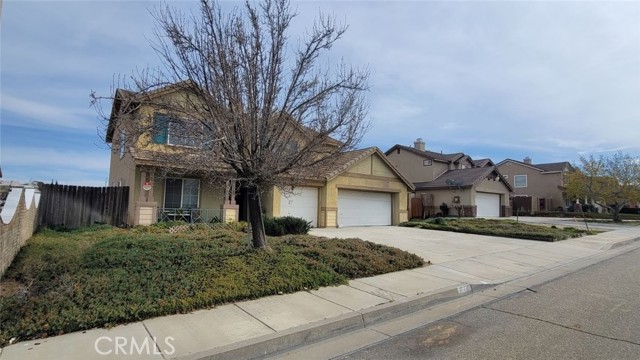 Welcome to this spacious 2-story home tucked into a quiet, desirable pocket of Palmdale—offering a peaceful setting while still being just minutes from shopping centers, dining, and everyday essentials. This well-designed residence features 4 bedrooms, 3 full bathrooms, 2,068 sq ft of living space, and a 3-car garage. A charming front porch welcomes you in and offers extra electrical outlets—perfect for lighting, décor, or seasonal touches. Inside, the main level includes a bedroom, full bathroom, and laundry room—ideal for guests, multi-generational living, or a private home office setup. Tile and carpet flow throughout the home, complemented by abundant natural light. The family room centers around a cozy fireplace, creating a warm and inviting space to relax or entertain. The home offers plentiful storage throughout, along with extra electrical outlets in multiple rooms—great for modern living and flexible furniture layouts. Upstairs, the bedrooms are generously sized, providing comfortable personal space for family, guests, or work-from-home needs. Step outside to a concrete slab patio and a generously sized backyard with room to create your dream outdoor space—whether that's adding a pool, an ADU, or both. Possible RV access adds extra flexibility. The front yard features low-maintenance desert landscaping for easy upkeep and curb appeal. This is a fantastic opportunity to own a versatile, well-appointed home in a quiet neighborhood with everyday amenities just minutes away.