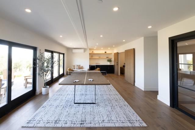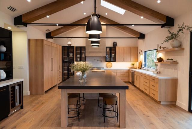 A rare opportunity to own an earthy modern estate set in the esteemed Woodside Hills with breathtaking sweeping Bay views. The residence was rebuilt with uncompromising attention to detail, offering a truly like-new experience that has never been lived in. Situated on 0.98 acres, the 6,809 sq ft home blends dramatic scale with warm, livable sophistication for true California Living. The thoughtfully designed floor plan includes 4 well-appointed bedrooms, 4 designer bathrooms, 1 powder room, dedicated office, flex studio, media room, laundry/mud room, and luxurious rec room. The designer kitchen serves as both a functional showpiece and an entertainers dream, featuring open steel & beam vaulted ceiling, natural light, custom white oak cabinetry, top-of-the-line appliances, wet bar, pantry, temperature controlled wine cellar, and designer finishes. The grounds include a stunning chefs kitchen, fire pit lounge, abundance of areas to entertain, view decks, and a refreshing pool. Surrounded by other distinguished estates, 150 Brookwood Rd is an iconic offering, combining design-forward architecture, extraordinary views, exceptional outdoor living, and an unparalleled Woodside setting to create a one-of-a-kind luxury retreat. Buyer to verify.