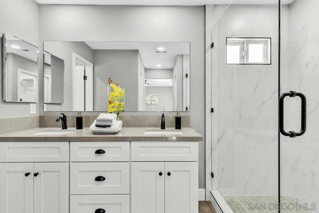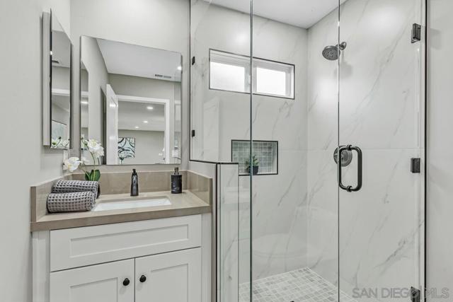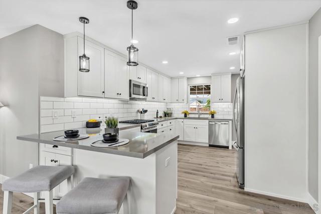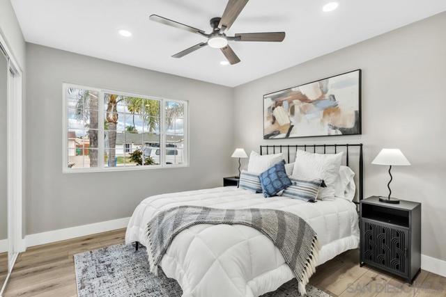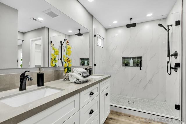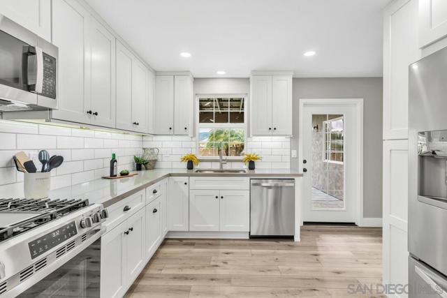 Welcome to this stunning, fully renovated home located in the highly sought-after Santee Lakes community. Thoughtfully redesigned from top to bottom, this move-in-ready residence showcases new LVP flooring throughout, updated wall texturing, and fresh interior paint that create a bright, cohesive, and contemporary feel. The heart of the home is the brand-new kitchen, featuring stylish new cabinetry, elegant quartz countertops, new sinks, LED under-cabinet lighting, and all-new appliances including a microwave, stove, and dishwasher. A brand-new fireplace with a custom mantle adds warmth and character to the living space, complemented by new recessed lighting and ceiling fans in the living room and bedrooms. Both bathrooms have been fully remodeled with designer tile, glass shower enclosures, new vanities, mirrors, and modern fixtures. The luxurious primary bathroom offers a spa-like experience with dual shower heads, a sleek glass enclosure & new double vanity. Step outside to enjoy a brand-new patio cover, a sparkling pool, and outdoor spaces perfect for relaxing or hosting guests. Additional upgrades include a brand-new furnace and thermostat, dual-pane windows throughout, all-new doors, trim, baseboards, closet doors and accessories, new locks and hardware, and fresh exterior paint. Ideally situated close to nearby parks, Santee Lakes, campgrounds, Mission Trails & Carlton Oaks Golf Course. With quick freeway access to the 52, plus close proximity to shopping, dining & entertainment - this home truly delivers the best of comfort, convenience, and SoCal living!