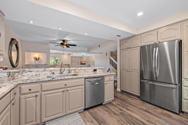 This property checks all the boxes! Don't miss this stunning home with open floorpan, high ceilings, spacious living areas, natural light, beautiful views and attached 2 car garage with EV charging outlet. You'll enjoy beautiful flooring and light fixtures, an elegant fireplace, the updated kitchen including SS appliances, and spa-like bathrooms. Primary suite features incredible sunset views with spacious closets and bath. Plenty of storage and closet organizers, soft-close cabinets, remote-controlled blinds in living area, enclosed laundry area, smooth-texture walls and ceilings, recessed lighting, and more! The serene patio is perfect for your morning coffee or evenings enjoying the views. Less than 10 minutes from one of San Diego's most iconic/scenic hiking trails and SDSU. This is a must see!